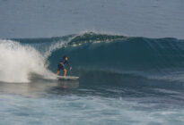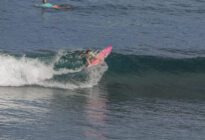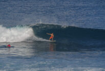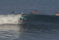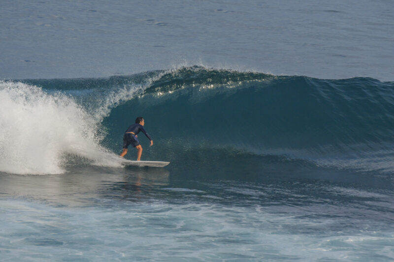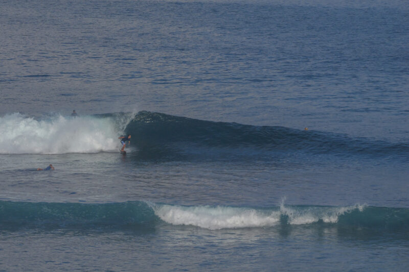 Today offered decent conditions at the world-famous Sanur Reef. The surf sat in the shoulder to head-high range, with a few larger sets rolling through. A north wind provided enough offshore flow to keep the wave faces clean, though it picked up noticeably as the session progressed. Surfers found solid right-handers offering fun rides and multiple turn sections, provided they could link them up.