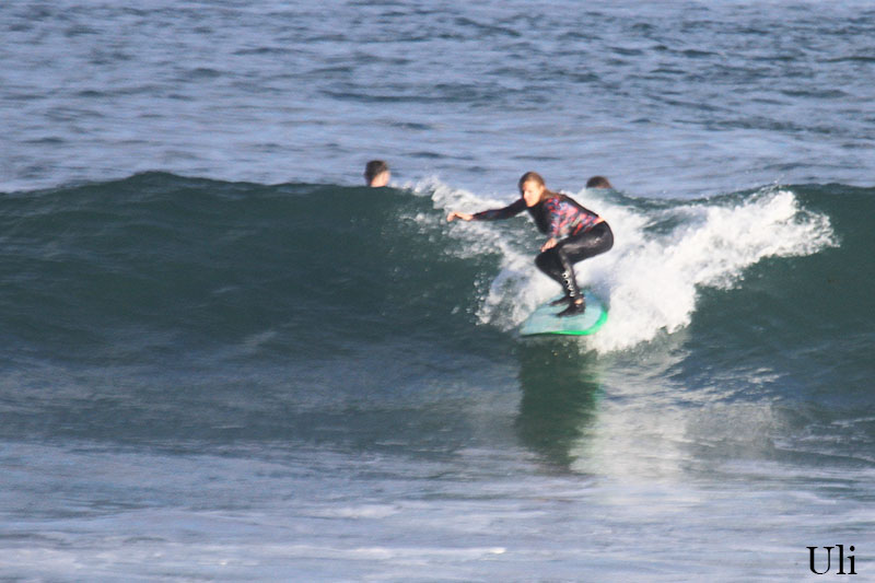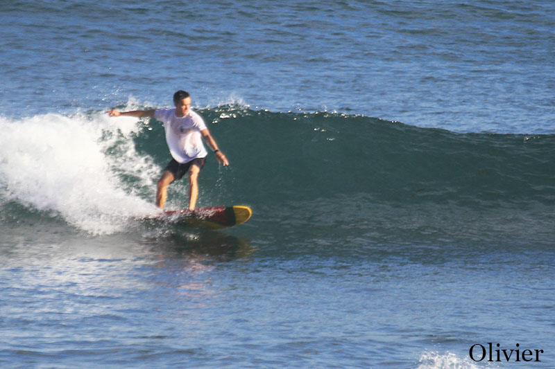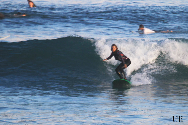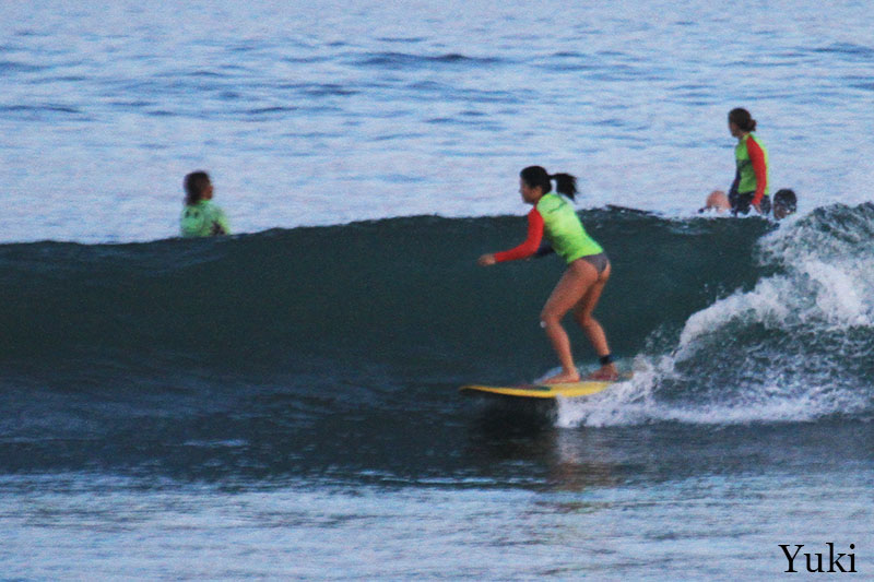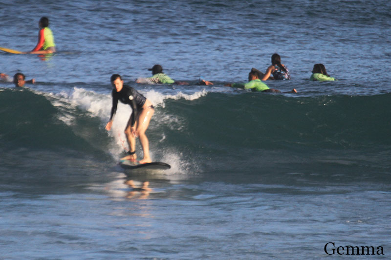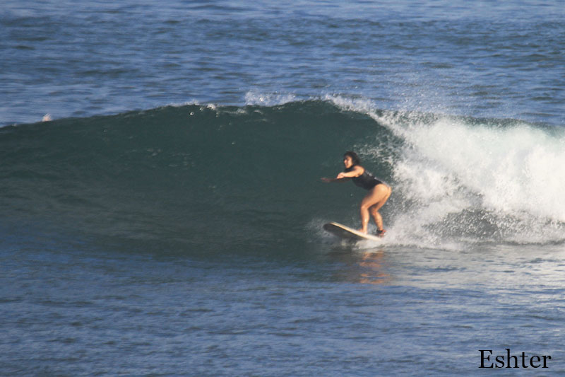 This morning both of our beginners and intermediate group headed to Padang Padang beach for surf lessons. We surfed at Baby Padang which breaks both left and right so it was excellent opportunity for our learners to practice turns in both directions. Intermediate group surfed in the outside section of the spot and beginners surfed in the inside. Conditions are quite good today, sunny light and a bit windy but very comfortable for surf lessons. Swell got bigger and waves are waist to chest high or shoulder high.