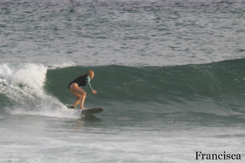 Intermediate group had surf lessons at Padang Padang this morning. New swell has built up and brought lots of waves so the surf is pumping everywhere on the Bukut. Conditions are not perfect today but comfortable enough for surf lessons. Cloudy this morning and still windy offshore. Waves are shoulder to head high and overhead high on sets.