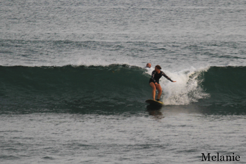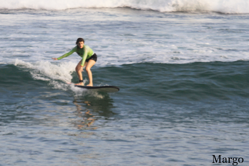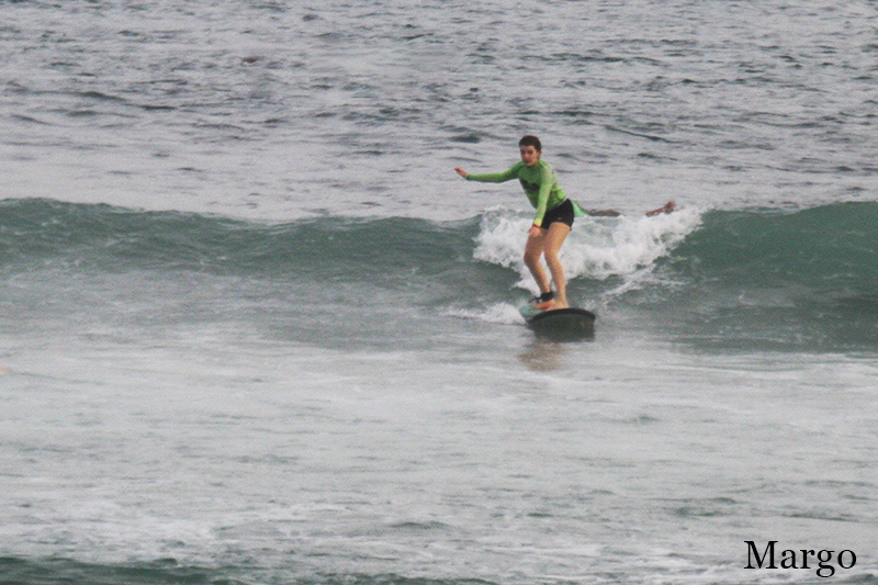This morning our camera went to Padang Padang beach where surf lessons for our beginners took place. Swell is dropped and our novice surfers are happy to come back to their favorite spot. Conditions are comfortable today but still windy offshore and cloudy. Waves are knee to waist high on the inside section and chest to shoulder high on sets on the outside section.