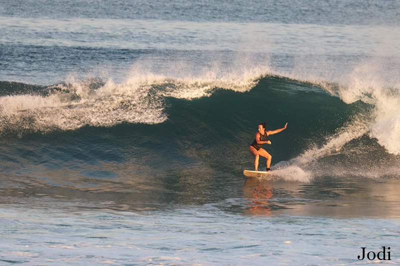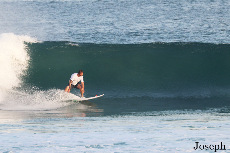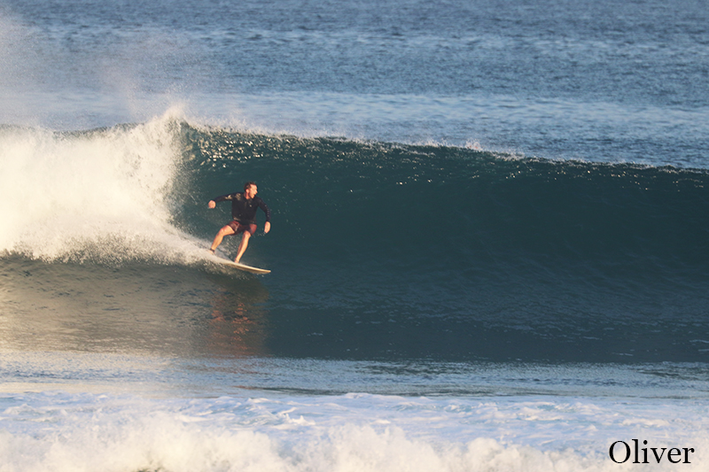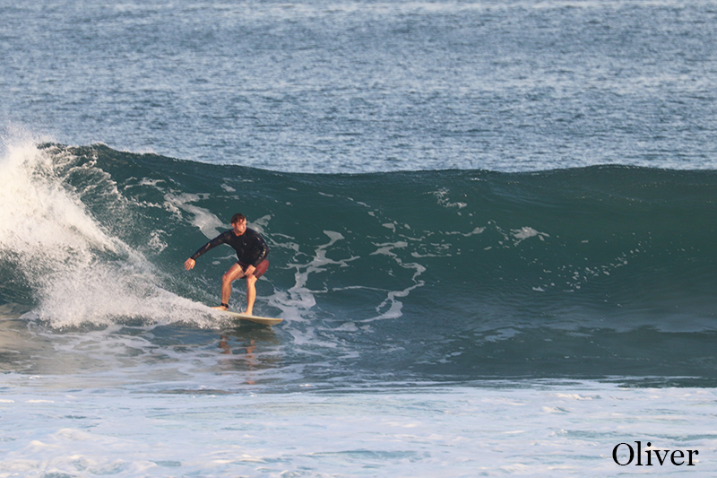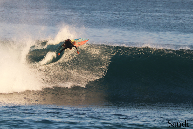 Another day, another great surfing session. This morning both of our advanced and intermediate groups headed to Dreamland for surf guiding and surf lessons. Swell is bigger and conditions are clean with light offshore wind. The waves are shoulder high to head high or overhead high on sets. Perfect opportunity for advanced group to practice different surf maneuvers. Our intermediate learners were trying to keep up with more experienced surfers and did their best during surf lessons.