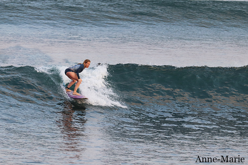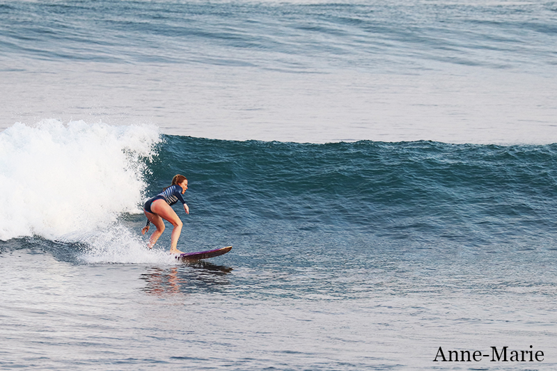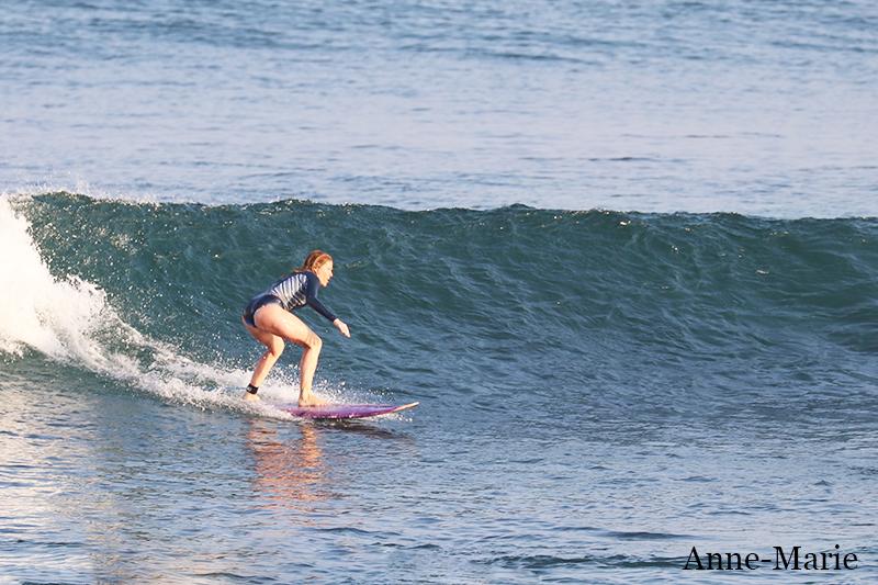 This morning our intermediate group enjoyed their surf lessons at Dreamland. This surf break is a particular favorite of intermediate surfers as there are a variety of spots that work on different tides and swell sizes. Conditions today are clean with light offshore wind and excellent for learning. Swell size is smaller than yesterday so waves are shoulder high to head high.