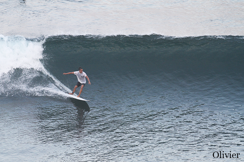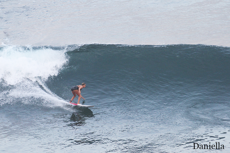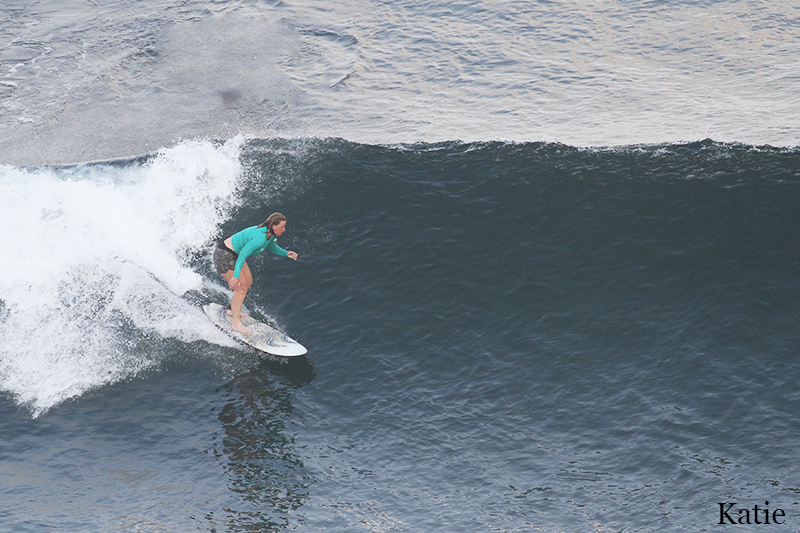 This morning intermediate group joined advanced group to surf Uluwatu. Conditions are excellent today, bright sunny day with light offshore wind. Swell is pretty much the same as yesterday, and waves are clean, shoulder high to head high size or overhead high on sets. Super fun and perfect for our surfers to exhibit their surf skills.