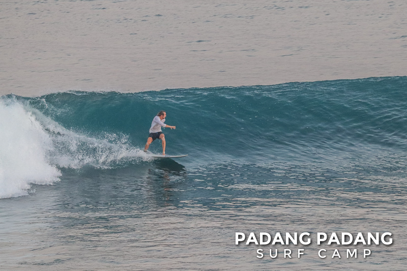 We were the first ones in the water this morning at Uluwatu and the conditions were flawless. Nothing more magical than watching the sun rise from the line up. Very quiet for the first hour and then the crowds slowly built. A few of the local pros came out and demonstrated how to make the most of the perfect surfing conditions.