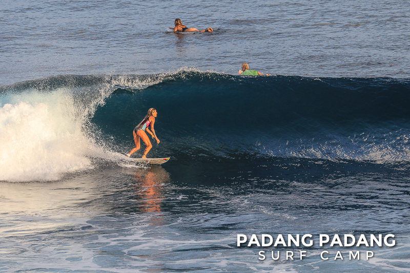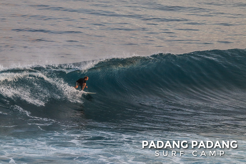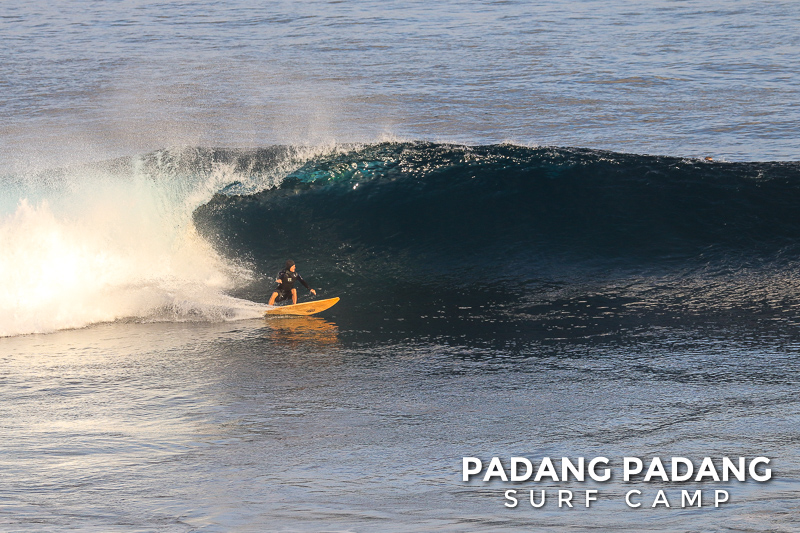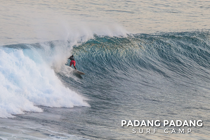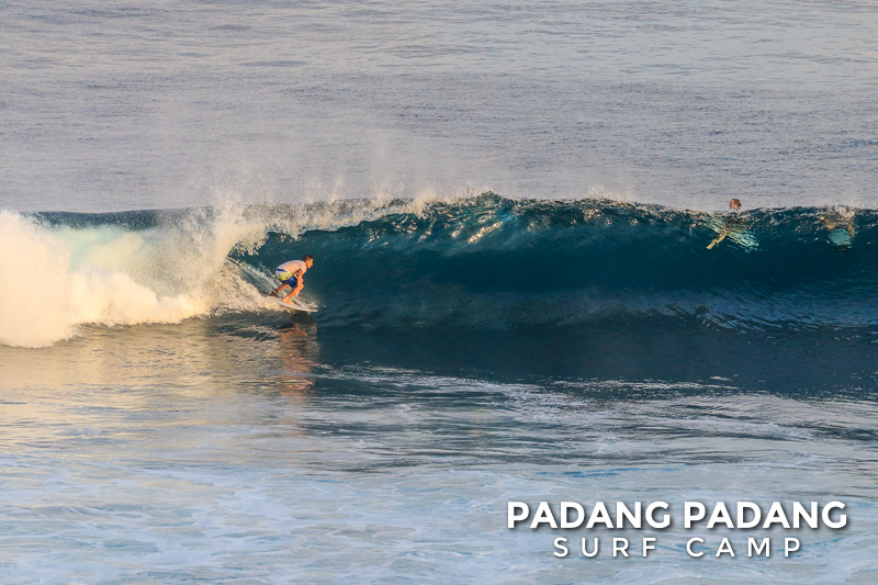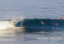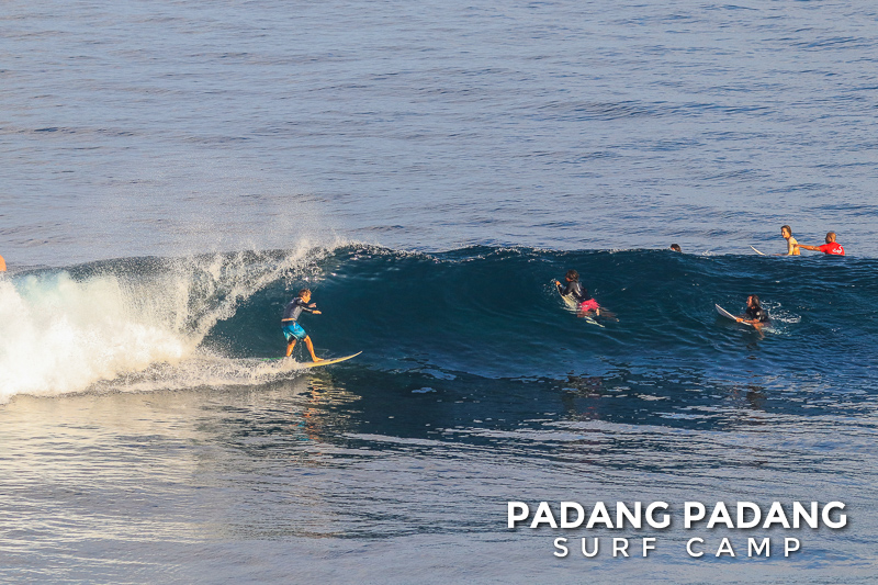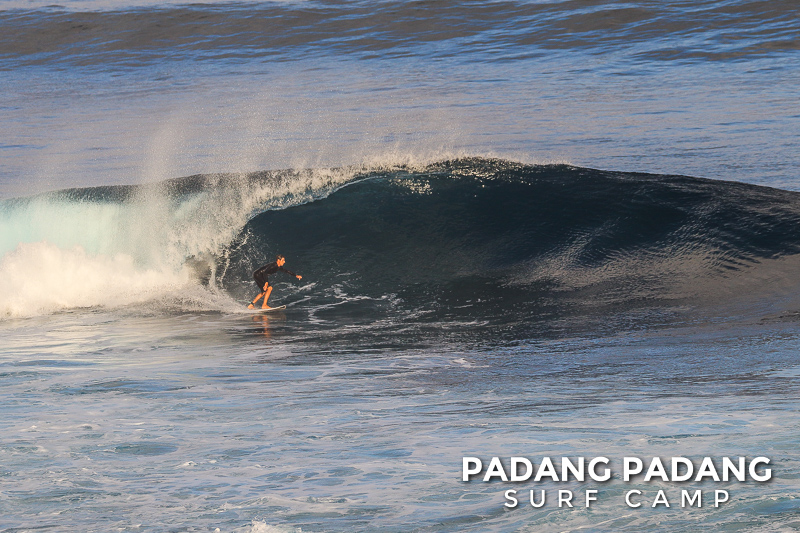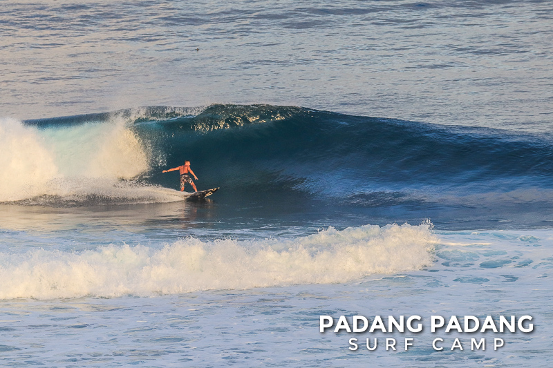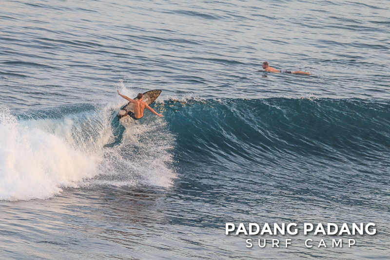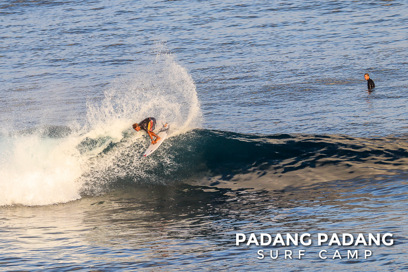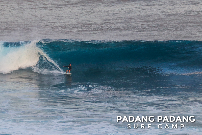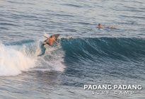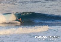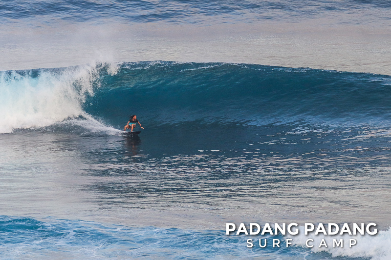Perfect size at Uluwatu this morning for advanced surfers, and as you can see from the photos, there were some great waves to be had. We had an early start this morning at the Racetrack which was near perfect. As the tide filled in the peak started working, and the set waves were pushing double overhead. Light offshore winds and sunny again, which is how we like it. When the swell is this size there are other spots further down the coastline that are suitable for intermediate surfers, and our intermediates surfed Padang Padang shoulder-head high.
