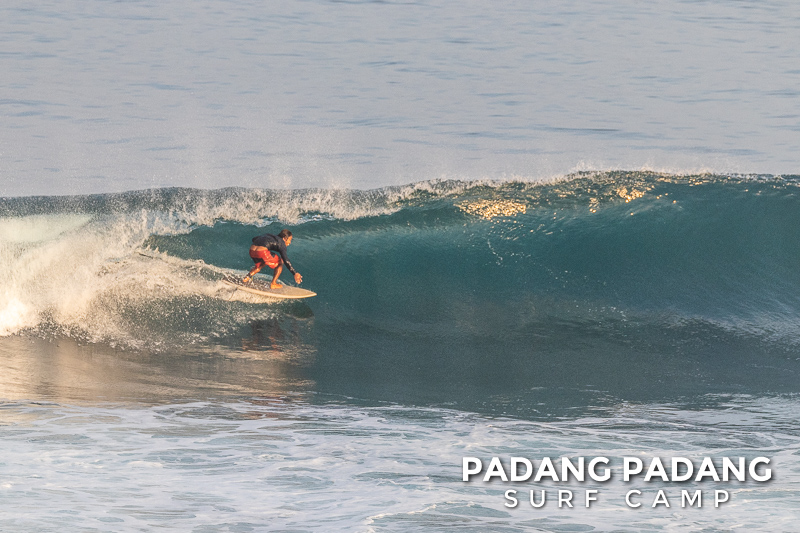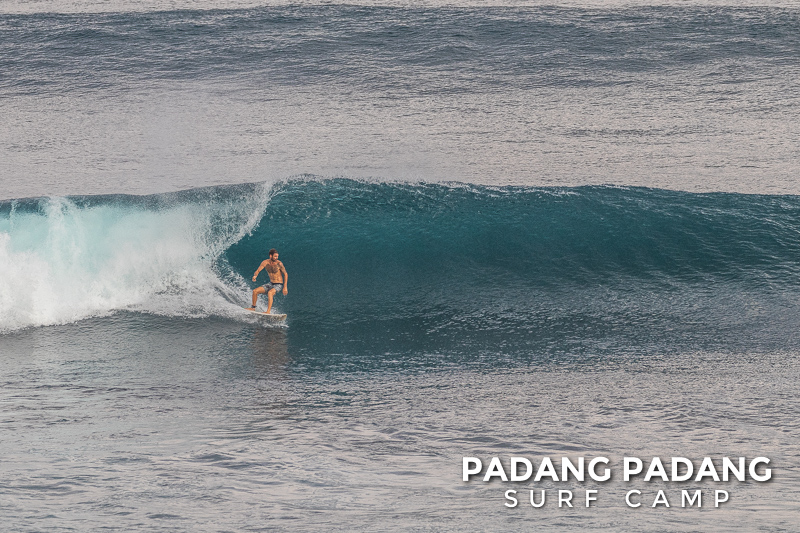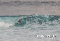 Incredibly quiet at Uluwatu this morning. Only 4 of us in the water for the first hour on the Racetrack, and there was some excellent long rides to be had. Swell is a bit smaller than yesterday, but perfect size for Uluwatu. At 9am there was still hardly anyone out, which is unusual when the waves were this good. There was a rain shower this morning which is quite unusual this time of year. Perfect morning of surf, with light offshore winds and a few barrels.