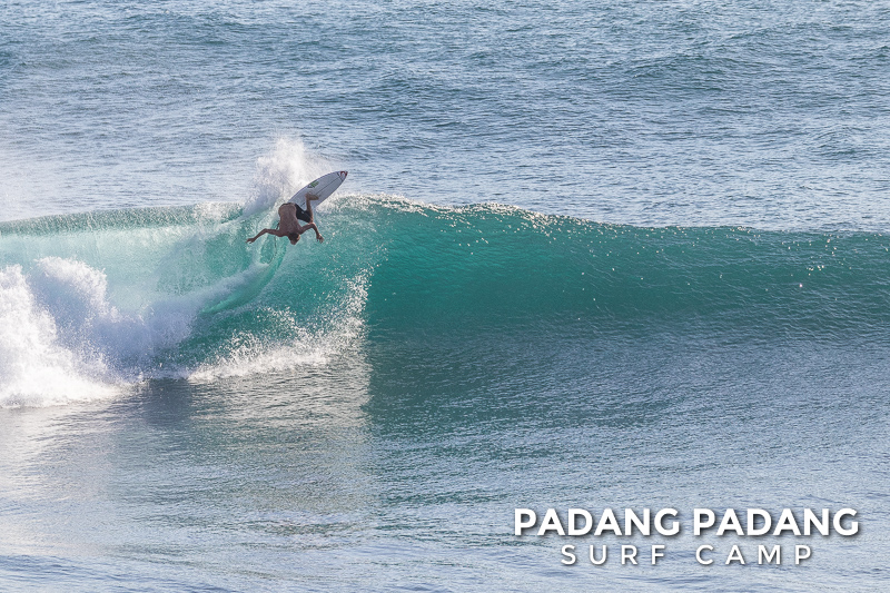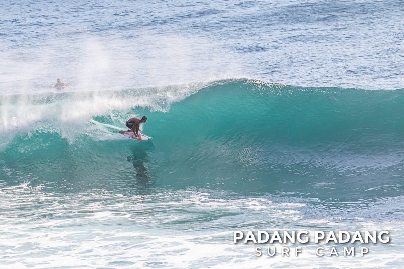 Today the swell is smaller, and more suitable for intermediate-advanced surfers than yesterday, which was quite challenging. The wind was medium strength, but blowing straight offshore so clean, quality waves on all sections of Uluwatu from Temples down to the Racetrack. The swell is forecast to me much bigger tomorrow, so we will do a dawnie and hopefully pick the spot which is the right size.
