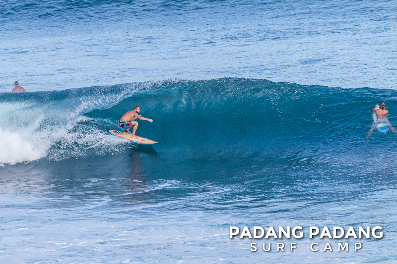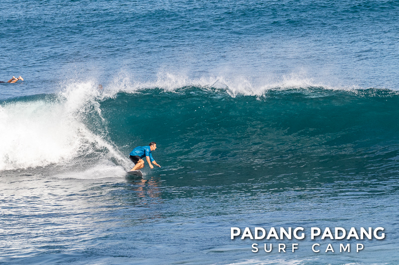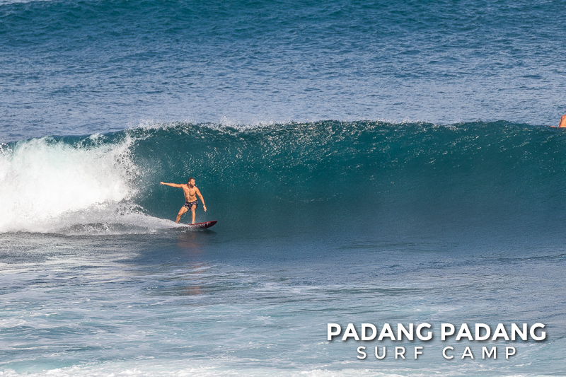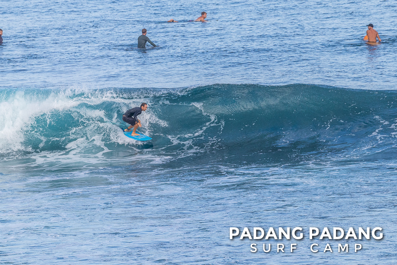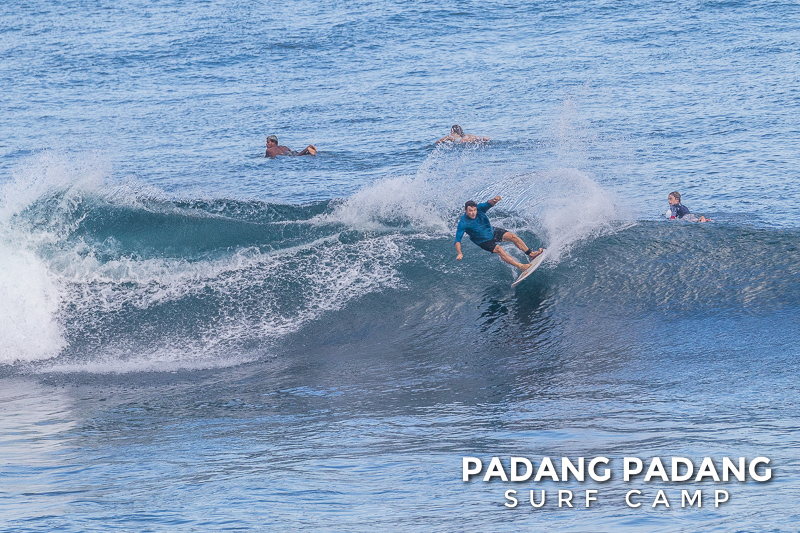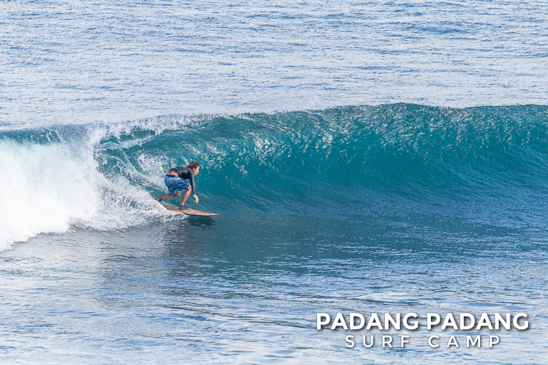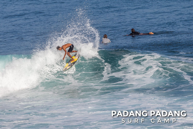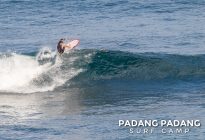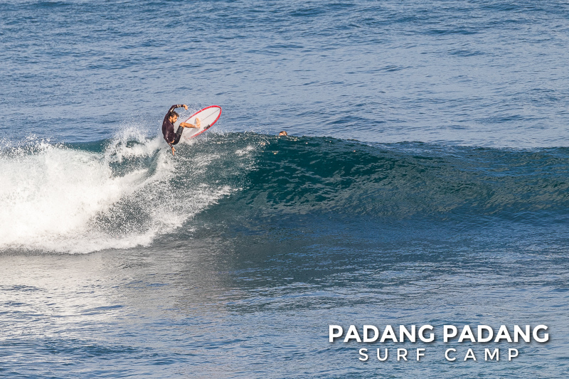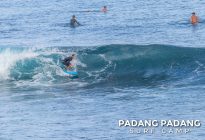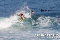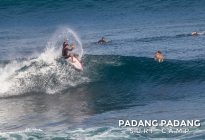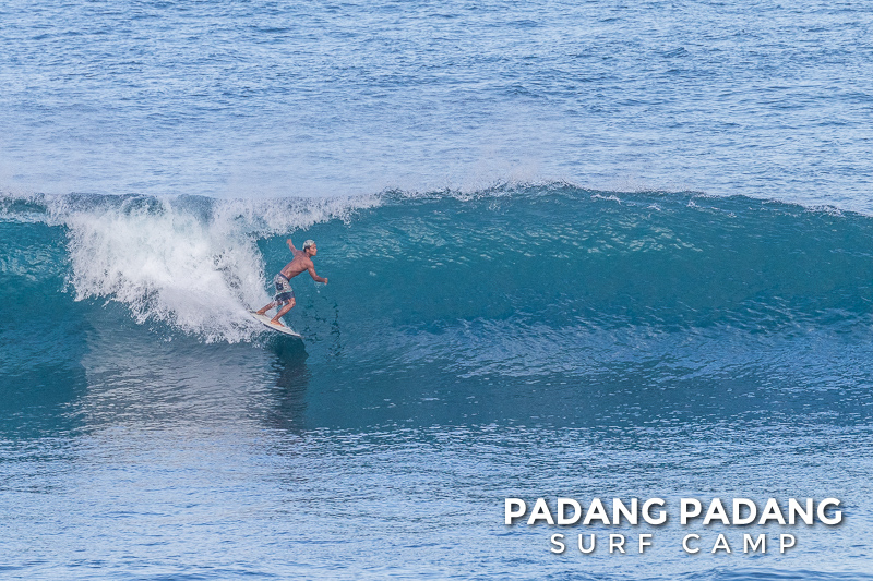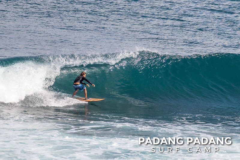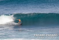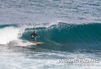 Uluwatu today the swell is smaller, and more suitable for intermediate-advanced surfers than yesterday, which was quite challenging. The wind was medium strength, but blowing straight offshore so clean, quality waves on all sections of Uluwatu from Temples down to the Racetrack. Not very powerful waves today, which is great conditions for intermediates to improve their surfing technique.