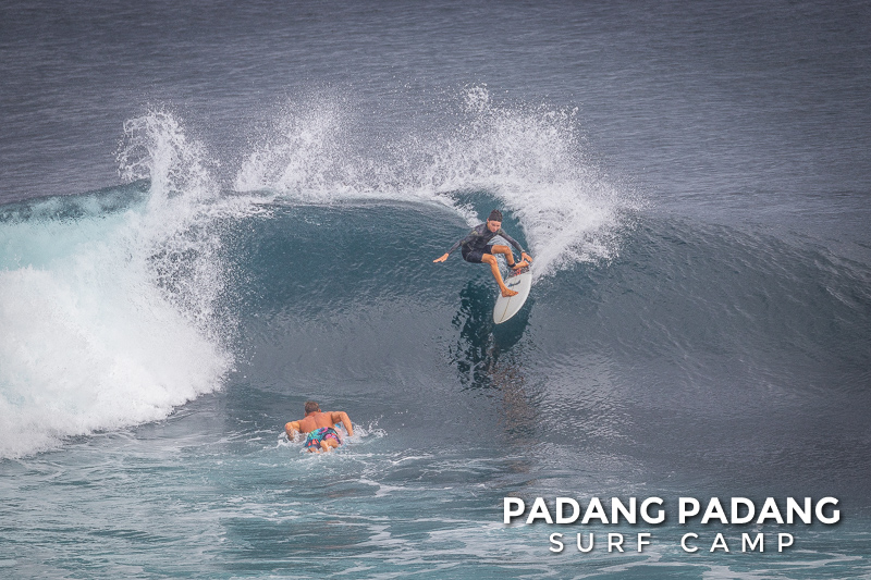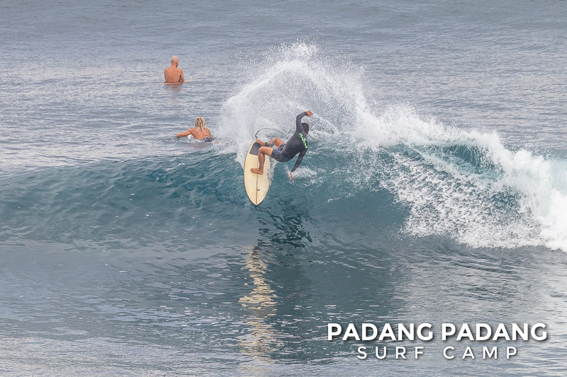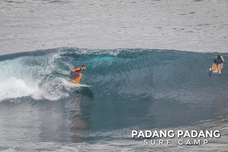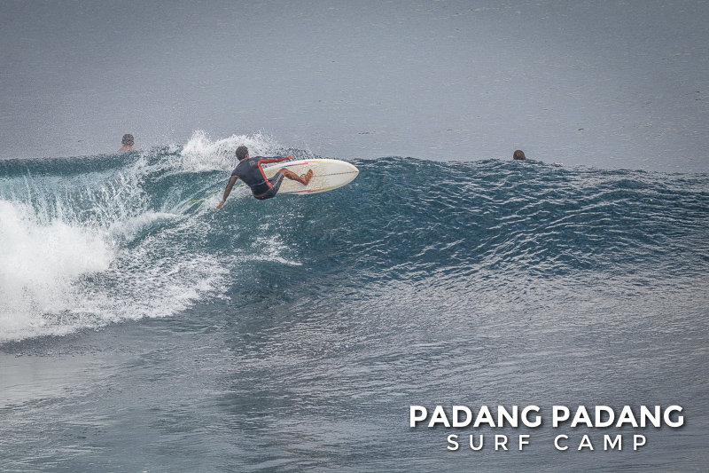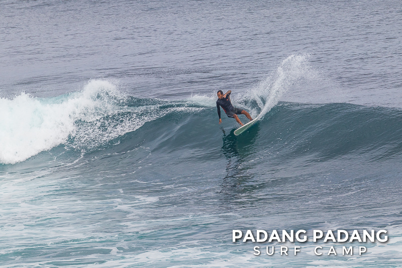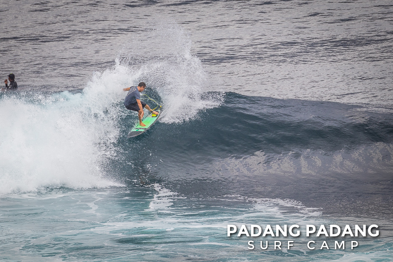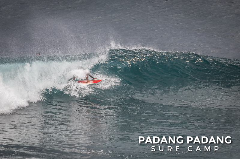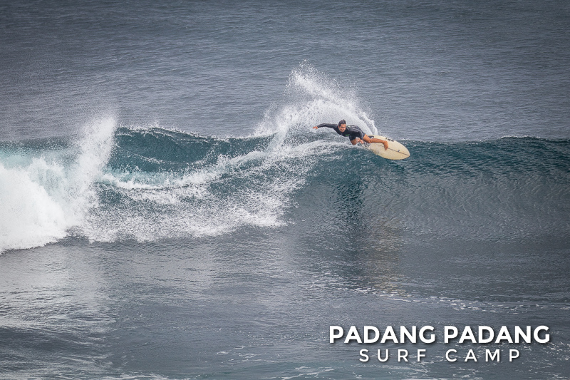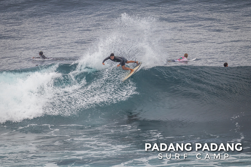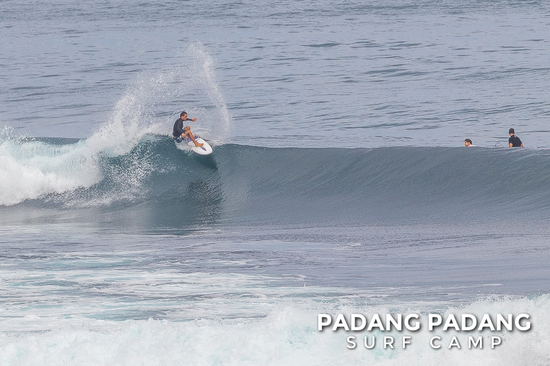 Uluwatu today the weather is a little cloudy and it’s raining,the waves are smaller than yesterday. More suitable for intermediate-advanced surfers than yesterday, which was quite challenging. The wind was medium strength, but blowing straight offshore so clean, quality waves on all sections of Uluwatu from Temples down to the Racetrack. Not very powerful waves today, which is great conditions for intermediates to improve their surfing technique.