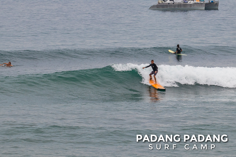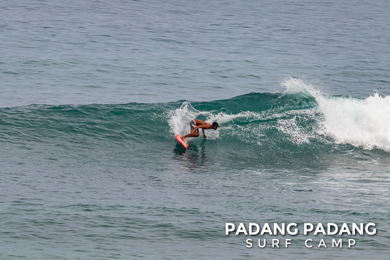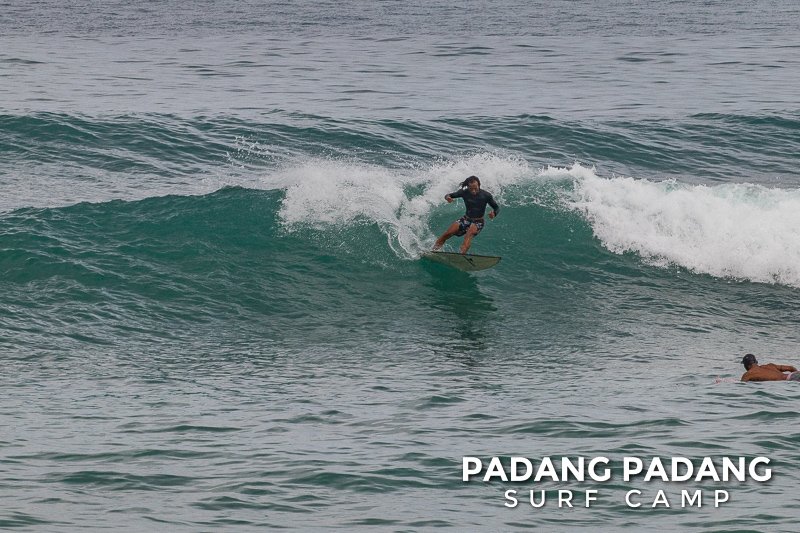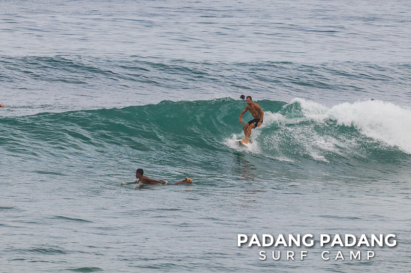 The waves were great this morning at our home spot Padang-Padang! Glassy conditions and perfectly shaped right-handers made everyone happy. It is no wonder why most people surf in the morning. The feeling you have when you surf on the smooth face of the wave is indescribable. You could compare it to snowboarding in powder, but more fun and exciting.
