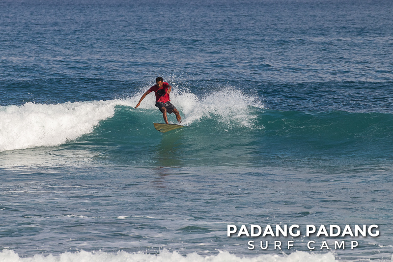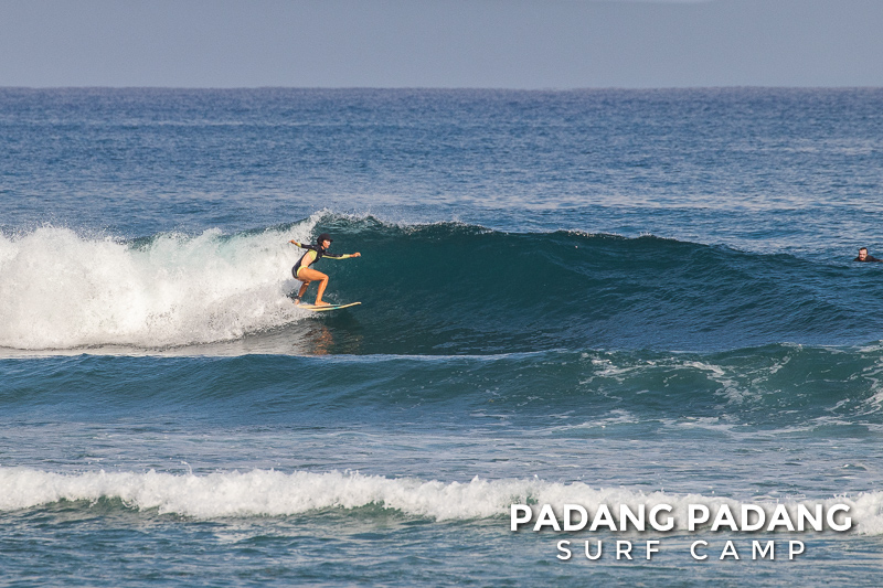 The scenery is spectacular and the white sand beach invites you to have a cold drink after the surf session. It’s also perfect to relax in one of the many warungs or enjoy the sun and crystal clear water. A surf spot for all levels, depending on wave size and tides. Great for beginners with small waves and high tides. Today it was perfect for the intermediate and advanced surfers.