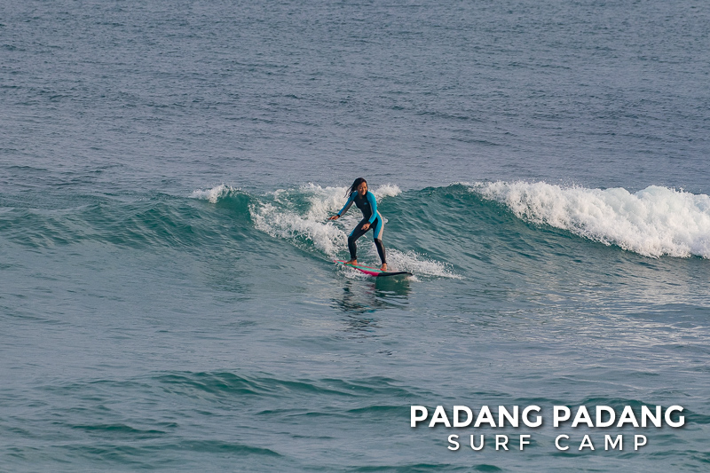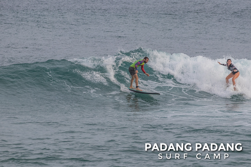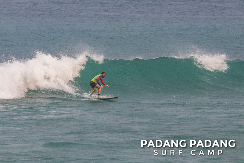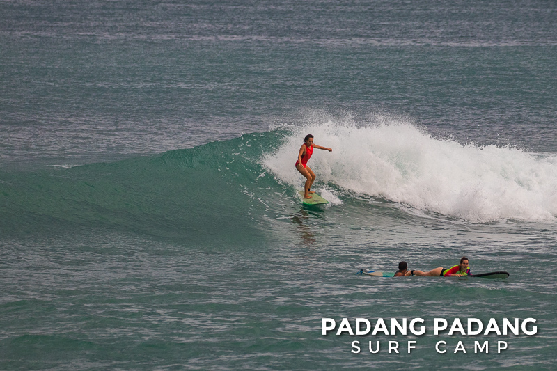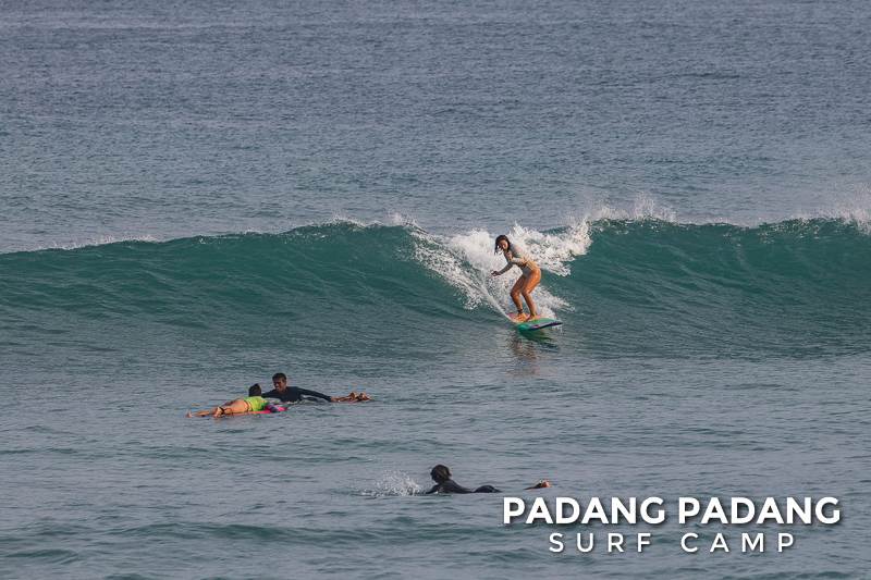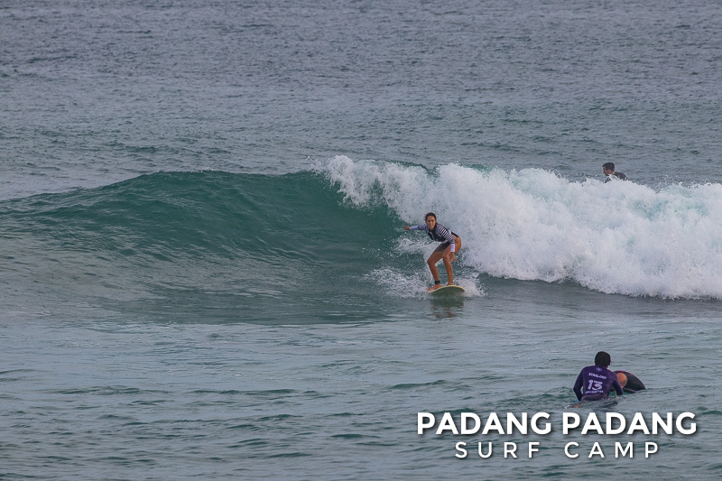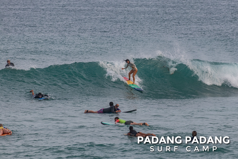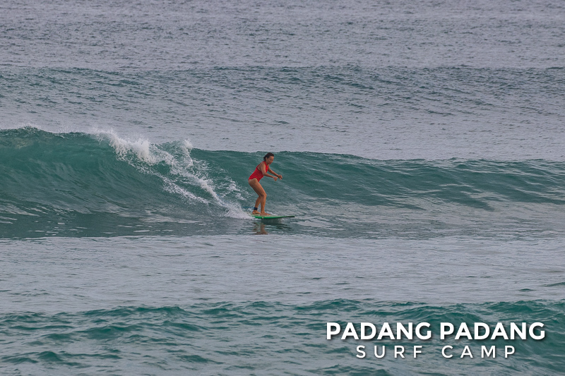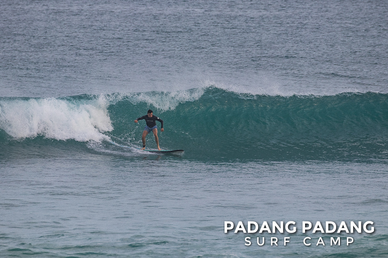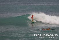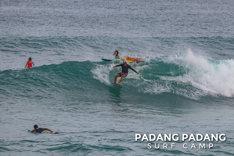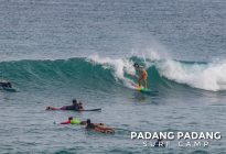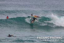 The swell has faded away a little and we are able to surf at our home spot Padang-Padang again. This is a favorite wave among beginner and intermediate surfers. The perfect shape of the wave and the wide channel next to it makes it easy to catch waves and practice the basics.