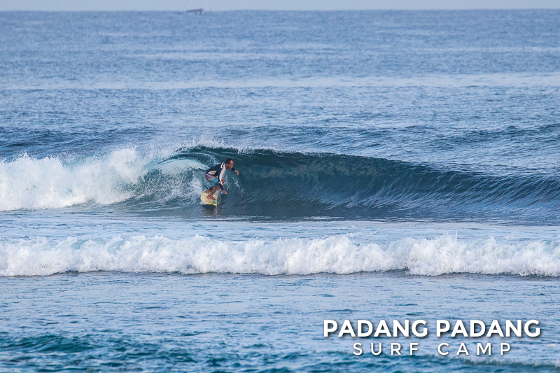 Balangan was showing itself from its best side this morning. Fun, long left-handers were breaking gently across the reef. The strong offshore wind helped to get around the fast-breaking sections a little easier. Some of the longest waves were ridden today by many of our guests.