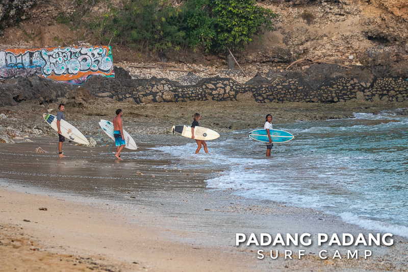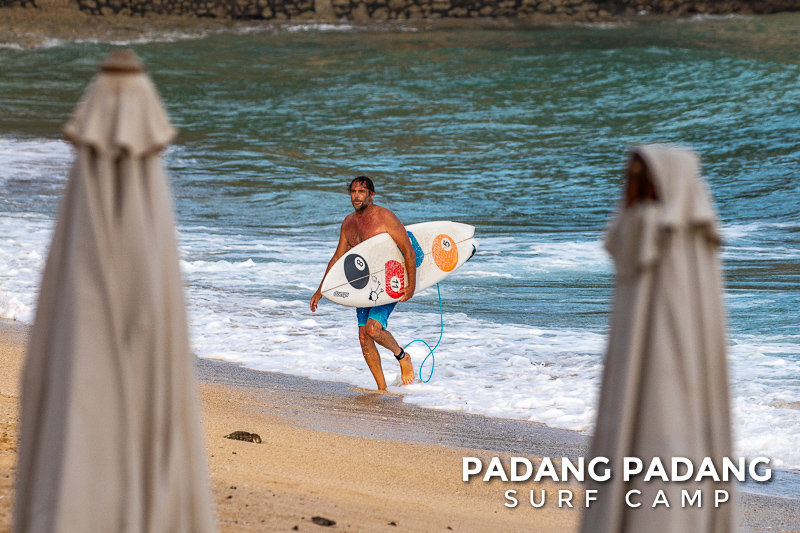 Many waves were caught and everyone was well exhausted after the session. The swell was dropping again a little today, but we expect the new swell to arrive very soon. Tomorrow, surely bigger waves will be on offer and we will explore other, more sheltered surf spots again. Uluwatu will be huge and places like Honeymoon and Toro-Toro will be the best choice for our intermediate and advanced groups.