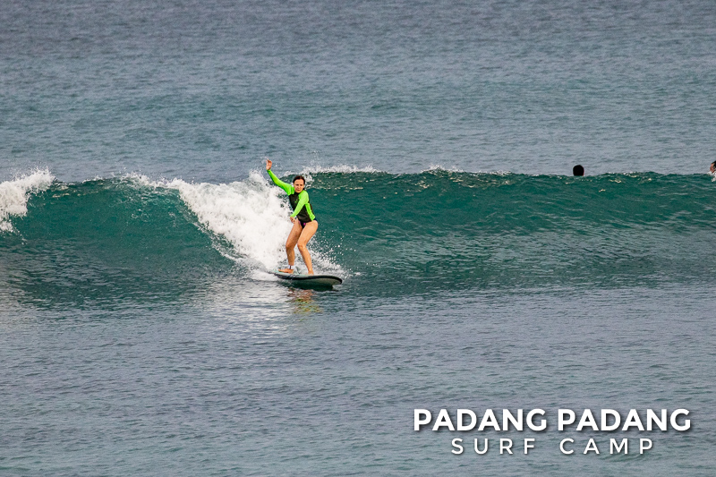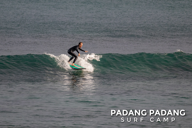 We had such a fun session this morning at Padang Padang! Perfect right-handers were peeling over the reef and the swell size was just right. Great conditions for catching the first green waves for our intermediate guests. On waves like this, progress is guaranteed!
