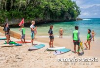 We woke up with sunny weather and spotless blue skies this morning. The waves at Padang Padang were great for our intermediate group and perfect for the kids. Gentle breaking sets came in consistently and catching waves was easy and fun.