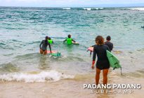 Getting up on the board and riding along the waves can be learned during the first few lessons, but there is much more to discover and learn. Not only about surfing itself but also about the waves and ocean. It is all connected and important to know to become a good surfer. Here at Padang Padang Surf Camp, if you are a beginner, you get the essential knowledge so you will be able to surf on your own at some point. Much is to be learned to get to this point and with us, you can be sure to get there as quickly as possible.