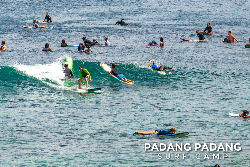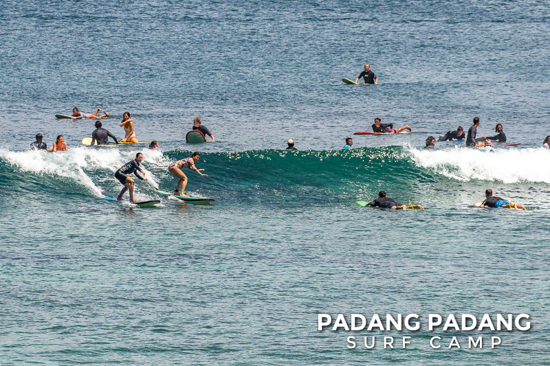 After a few days of cloudy weather and long-awaited rain, the sun is shining again and the waves are perfect as usual. Crystal clear, blue water and white sand beaches, Padang Padang is a picturesque beach. Combined with the beginner-friendly waves, this makes a perfect spot for learning how to surf and relax.