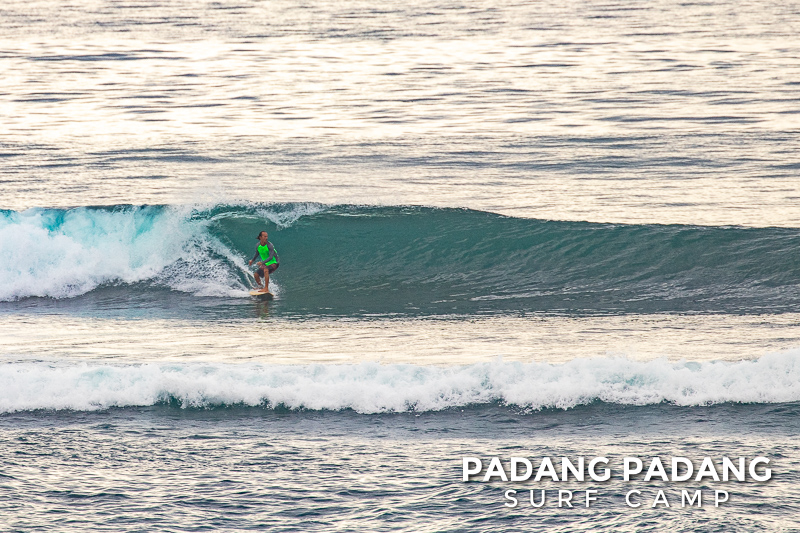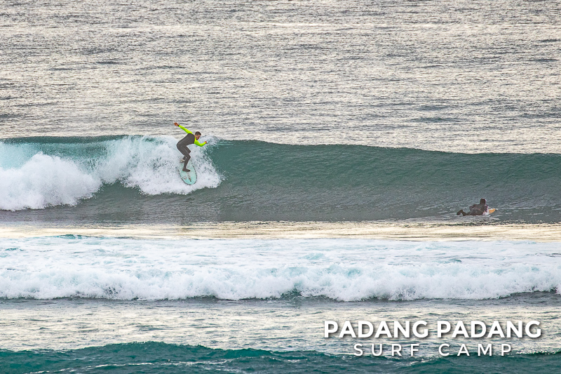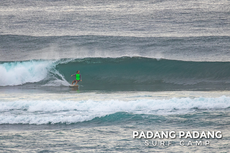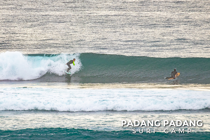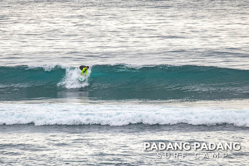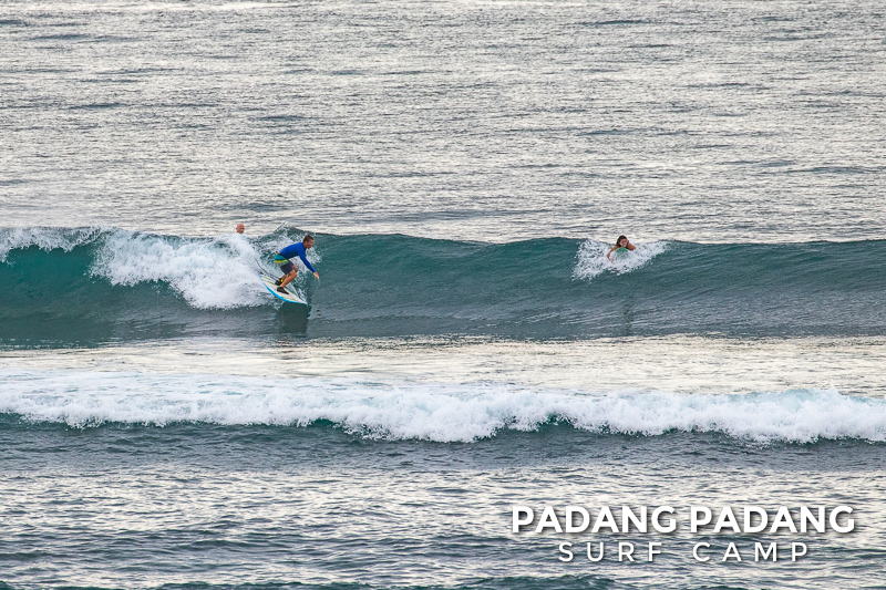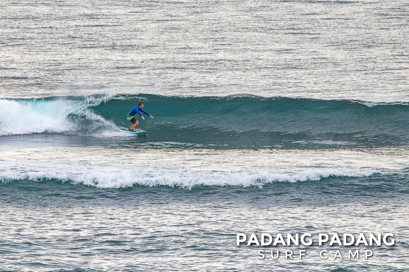 Our intermediate group headed off to Geger Left again this morning as the onshore wind has decided to stick around the Uluwatu area for another day, as predicted in the forecast. At Geger, the wind was blowing offshore, and the swell was showing its full size with overhead waves on the sets. Our surfers managed to race down the line for some fast and challenging rides.