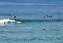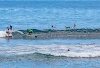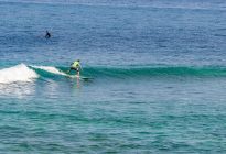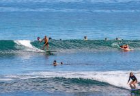 Our beginner surfers returned to Padang Padang this morning where they found a beautiful, sunny day and a bump in swell size! The swell forecast shows 5 ft. at 12 seconds, however the waves were larger today than the day before. Our surfers enjoyed many attempts at going both left and right on the shoulder-high waves. The easy, rolling waves provided ample oportunities for a developing surfer to begin to gain an understanding of the balance and control of their surfboard as it moves through the water.