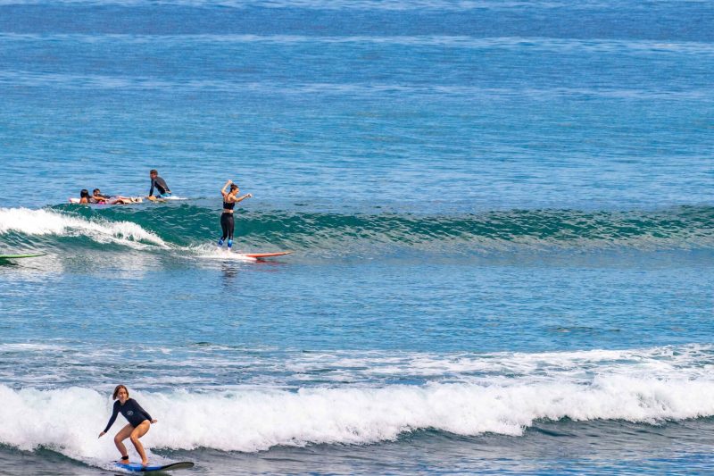 Padang Padang is the perfect beginner wave. Its protected, slow-rolling waves move at the perfect pace to allow a surfer to develop their skill set. The surface of the ocean and the wave faces are often cleaner than other breaks as the wave is tucked in behind a headland. Additionally, the current directs you back out to the lineup after a wave!