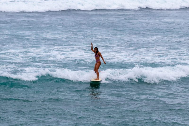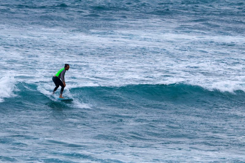 As a developing surfer, it is beneficial to surf in all conditions. The choppier sea state often means you must pop up quickly to avoid nose-diving. Once this is learned, you can apply the new skillset to days with clean conditions. When you are able to get to your feet at the top of the wave, you can benefit from the control gained from being in the functional stance while sliding down the wave face.