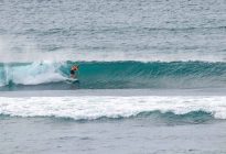 A storm blew in overnight leaving the west coast of the island with messy conditions. This is not an issue for our camp as we can quickly access the southern and eastern coastlines of the Bukit Peninsula. The swell is holding steady at 5ft. at 13 seconds coming from 218 degrees. Our intermediate group headed to Geger Left where they found pumping offshore, overhead waves breaking over the reef. Our group scored clean, fast walls with a few barrel sections for the skilled surfer to take advantage of.