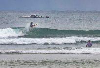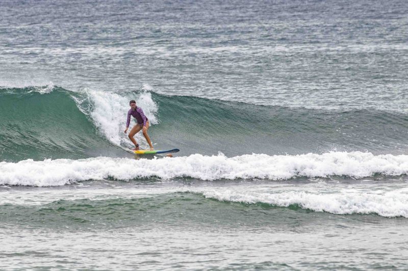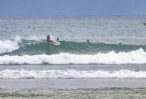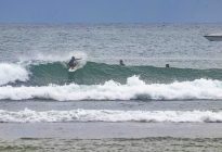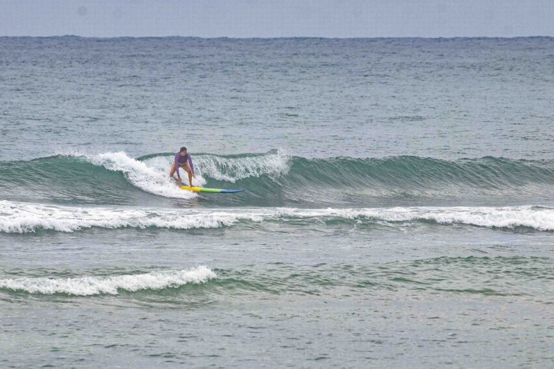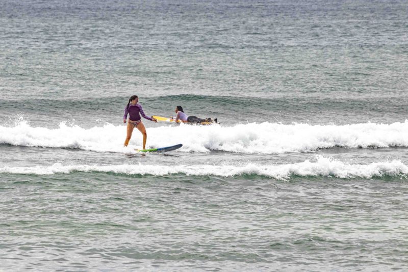 Having had a relaxing and enjoyable Christmas day, our committed beginner surfers paddled out at Blackstone this morning. The weather has improved after three days of strong wind and rain. The swell is holding steady at 5 ft. at 13 seconds, coming from 214 degrees. The morning low tides have returned and are predicted to progress later into the morning over the next few days. The waves were clean, offshore, and head-high with larger set waves, and our surfers enjoyed the lighter crowd. Everyone got excellent waves and made improvements with their surfing, positioning, and paddling strength.