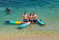 Our beginner group headed back to the camp favorite of Baby Padang. The swell has dropped since yesterday however the waves were still waist-to-shoulder high on the sets, which is a great size for people just learning how to surf. The southwest wind was blowing lightly at the more exposed spots, however it did not affect the waves at Baby Padang. Our surfers got plenty of fun left and right-breaking waves as the sea state and wave faces remained smooth.