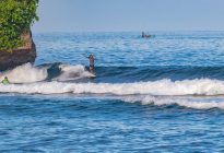 It has been a beautiful, dreamy morning on our side of the Bukit Peninsula! A smooth sea state, a light offshore wind, and head-high surf! The swell hung around for another day, and our surfers scored excellent waves. Our beginner group headed to Balangan this morning while the advanced group went to Uluwatu. The wave faces remained glassy, and the wind remained light and variable for the duration of the session. Due to the southerly direction of the swell, the waves at Uluwatu were a step up in size compared to Balangan. Our surfers scored long left-breaking waves running down the reef at both locations!
