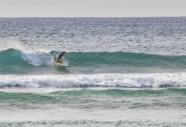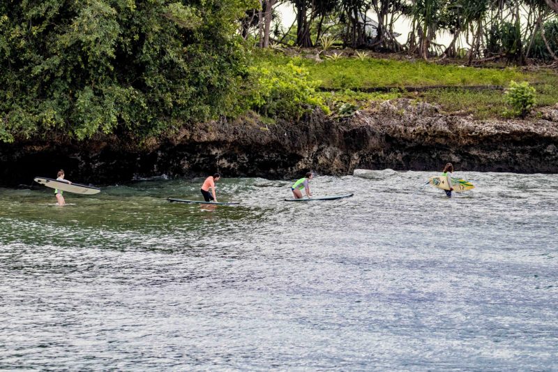 Our beginner surfers headed to Blackstone early this morning where they found challenging but fun conditions. The wind has been blowing strongly around the Bukit lately, after the two days of clean conditions we had previously. The swell has picked up in size coming in at a healthy 6.5 ft. at 14 seconds, coming from 207 degrees. The wind blew offshore, which held up the faces of the waves, keeping the lines smooth and organized. Our surfers challenged themselves in the strong offshore conditions, but everyone improved their skill set and had a good time.