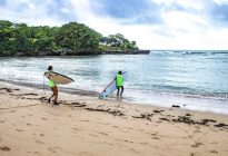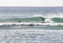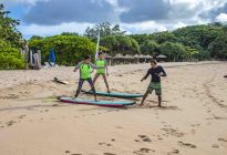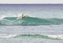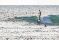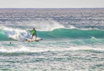Our beginner surfers were off to Black Stone again this morning where they enjoyed easier conditions and the sunny weather. The swell has dropped in size to 5 ft. at 13 seconds coming from 202 degrees, and the stiff breeze continued to blow offshore from the west. Our surfers left the camp at 6:30 AM, giving the tide some time to come up after a low of 3:40 AM at -.1 meters, and a high of 1 meter at 9:45 AM. Like yesterday, the steady wind kept the faces of the waves open, which allowed the surfers to enjoy some long rides across the reef!