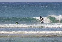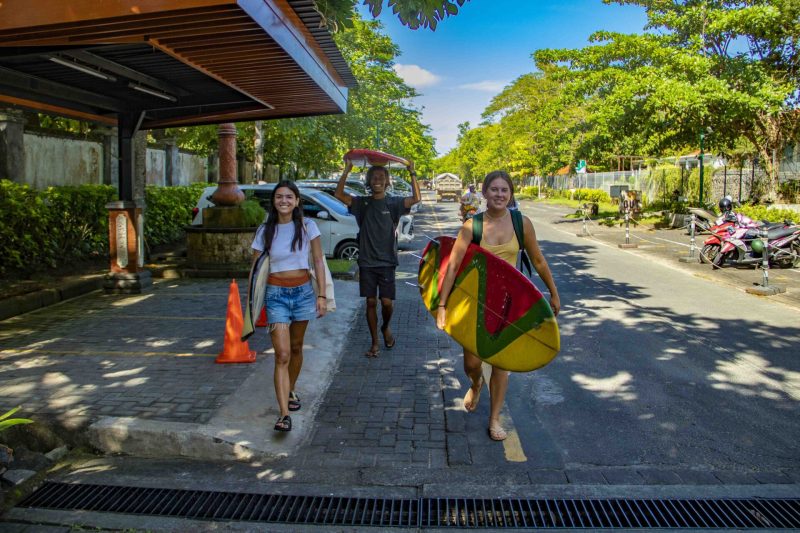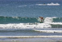 Our intermediate group headed over to Black Stone in Nusa Dua this morning as our light west wind has picked up in strength to around 10 mph, and shifted more to the northwest. The breaks in the Uluwatu area do not have any protection from a northwest wind like they do on a more southerly wind as the tall cliffs block some of the south-southwest wind. Since we are in Bali, which is the world’s premier surfing location, we can simply jump in the car and head to Nusa Dua, where the wind will blow beautifully offshore into the many breaks in the area.