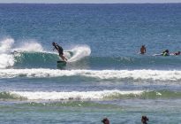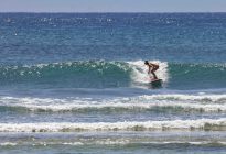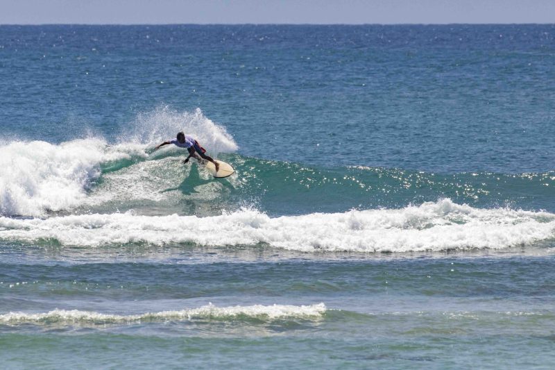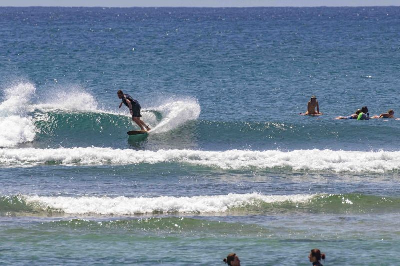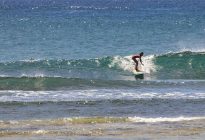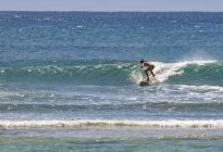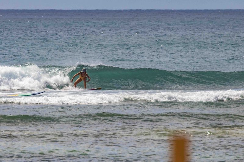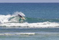 The swell is hanging around at 5.5 ft. at 13 seconds which brought in head-high waves with the occasional larger set. Our surfers got several, fun, left and right-breaking waves which broke nicely across the reef against a moderate offshore breeze.