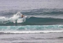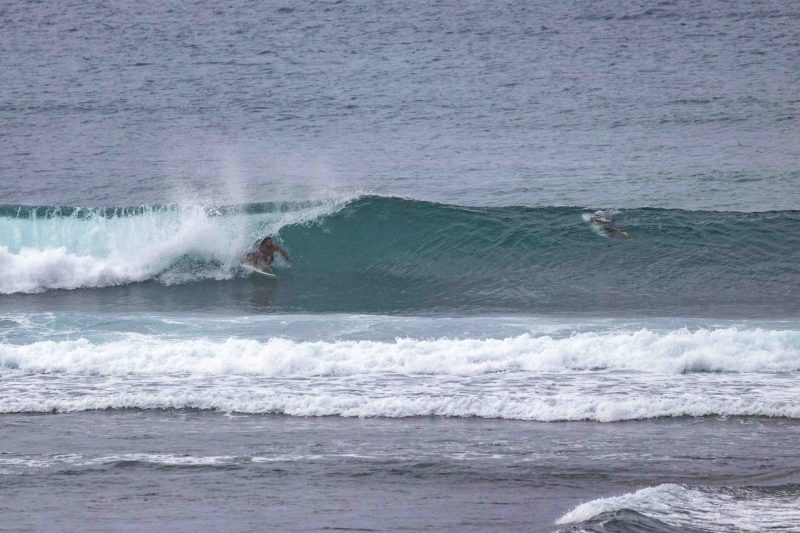More excellent wet season surfing here in Bali. Geger Left has been very good for nearly two weeks straight. We have been enjoying daily Head-high to overhead waves with an offshore wind of varying degrees of strength. For today, the swell is coming in at 5.5 ft. at 11 seconds, which brought in more head-high to overhead waves. The outside peaks offered up larger set waves with barrel sections for the skilled surfer.