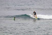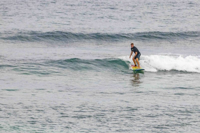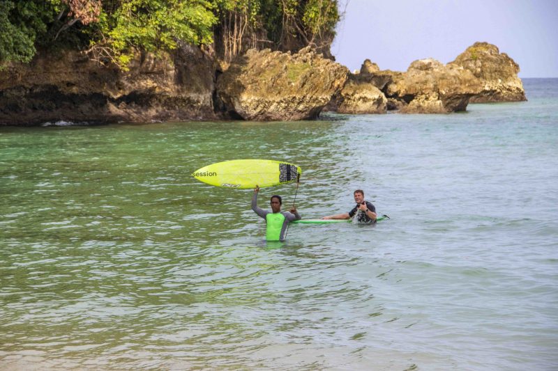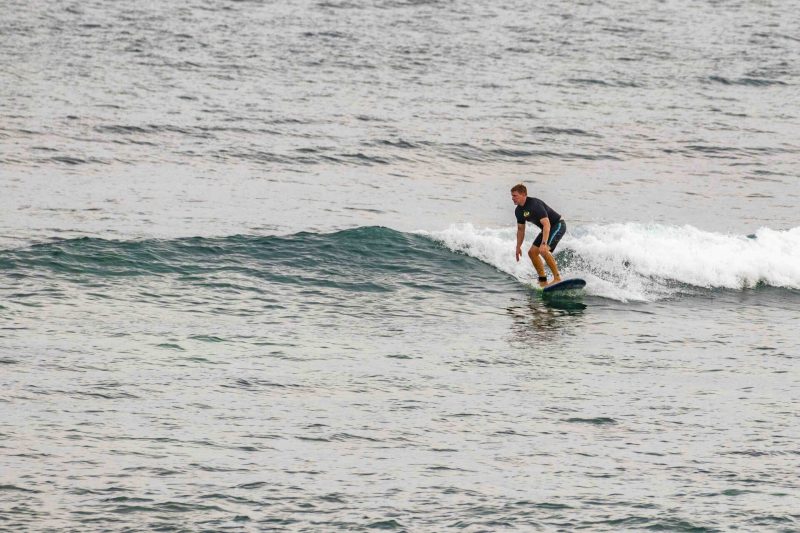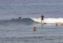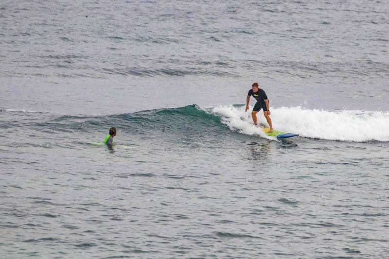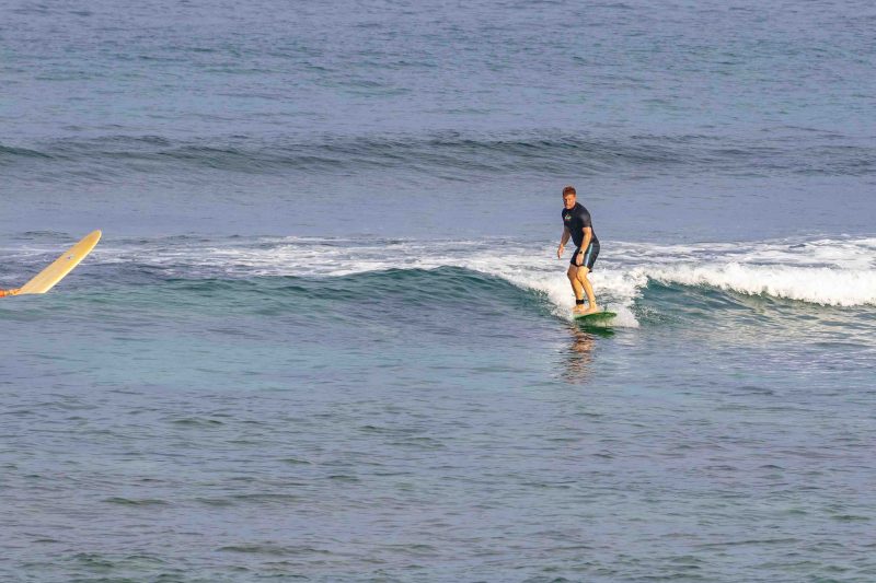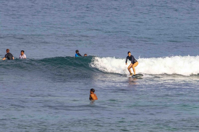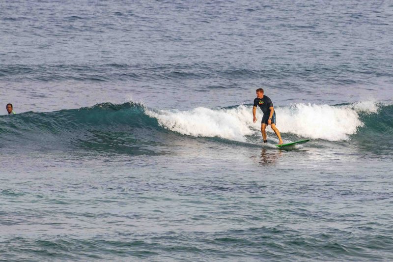 After a dramatic night of heavy rain, lightning, and a minor earthquake, we woke up to a bright morning with excellent beginner surfing conditions! With the break in the weather, and the sea state smoothed by the rain overnight, our beginner surfers enjoyed a beautiful morning at Padang Padang. The swell is coming in at 6 ft at 12 seconds, coming from 208 degrees, which provided shoulder-high set waves breaking left and right along the reef amongst a light westerly breeze.