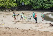 Our beginner surfers headed to Blackstone early this morning where they found challenging but fun conditions. The wind has been blowing strongly around the Bukit lately, after the two days of clean conditions we had previously. The swell has picked up in size coming in at a healthy 6.5 ft. at 14 seconds, coming from 207 degrees. The wind blew offshore, which held up the faces of the waves, keeping the lines smooth and organized. Our surfers challenged themselves in the strong offshore conditions, but everyone improved their skill set and had a good time.