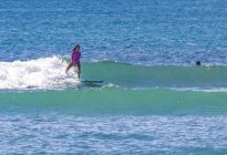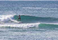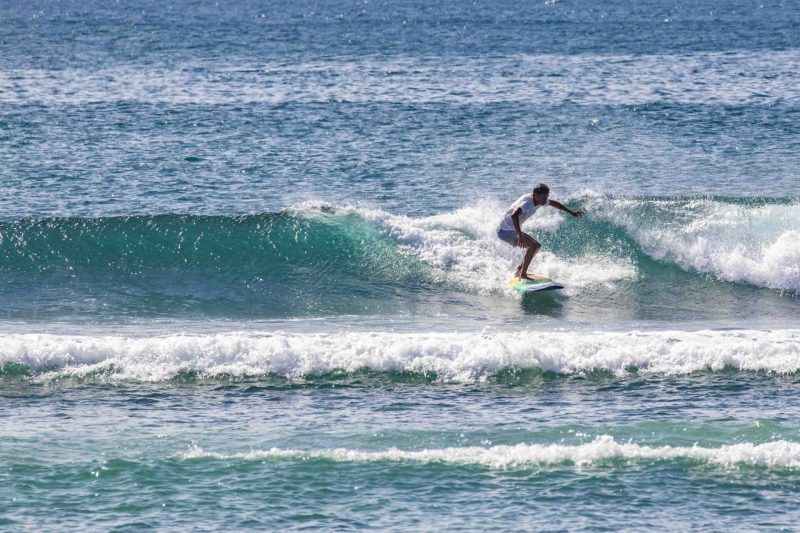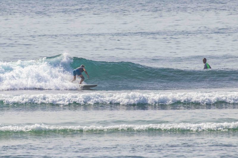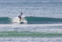 With hopes of a brief respite from the persistent west wind, our surfers set off to the scenic beaches in Nusa Dua. At Black Stone, the swell came in at 2.5 ft. at 13 seconds from 212 degrees. The waves were head-high on the sets at the peak towards the middle of the beach, and most of the surfers were spread out between the various peaks and beaches that make up the Nusa Dua area. The wind blew moderately offshore which kept the wave faces clean, and the sea state was left textured by an overnight breeze.