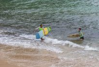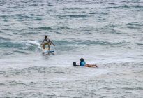Our surfers were up bright and early this morning for their sessions. The beginners set off to Baby Padang while the intermediates surfed at Geger Left. The west wind is still blowing; however, the period has increased in the swell, which makes for better surfing conditions than yesterday. The swell is reading 4.5 ft. At 15 seconds on the forecast, which brought in shoulder to head-high set waves at Baby Padang. The west wind chopped up the sea state; however, the faces of the waves remained clean enough for fun beginner surfing.