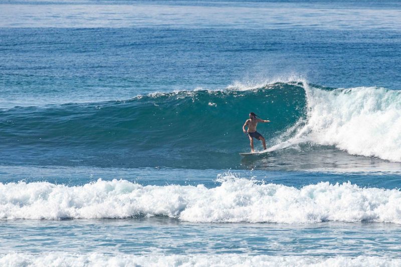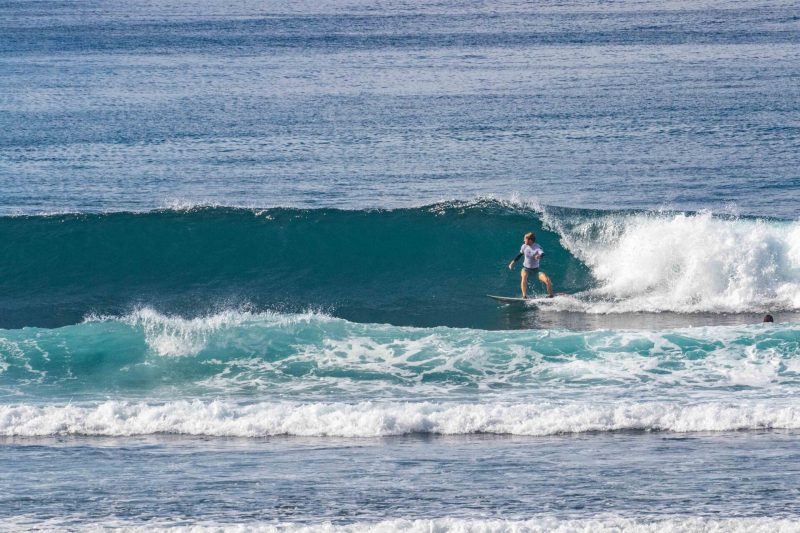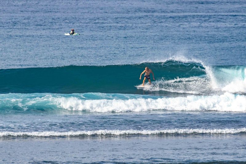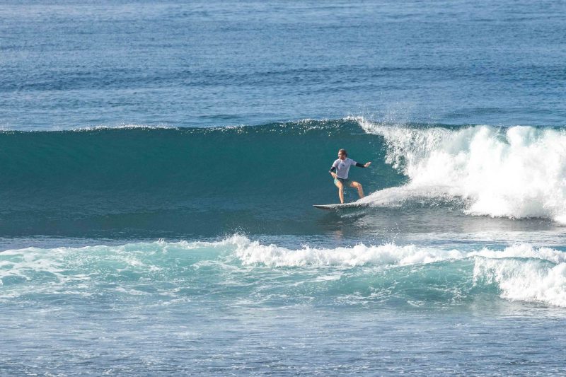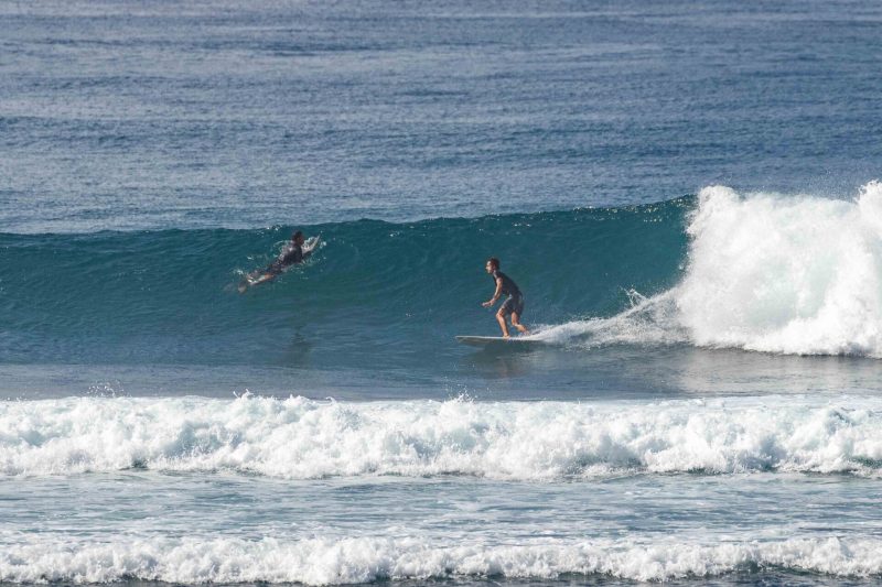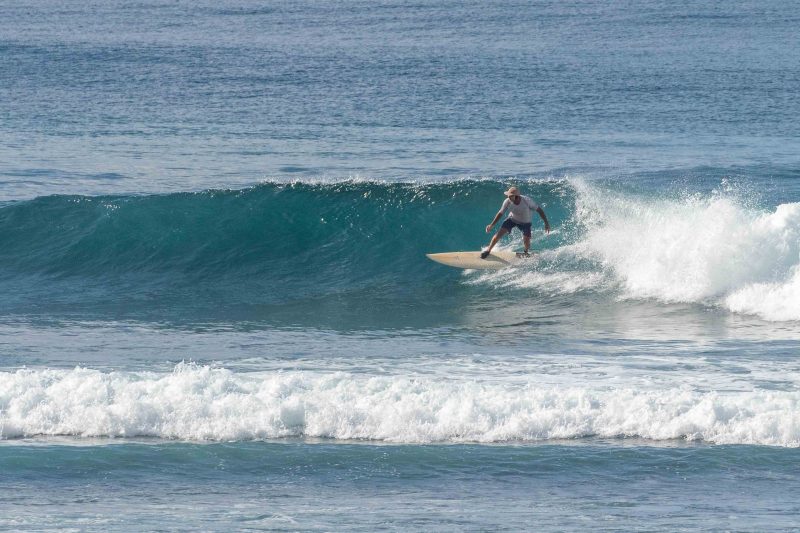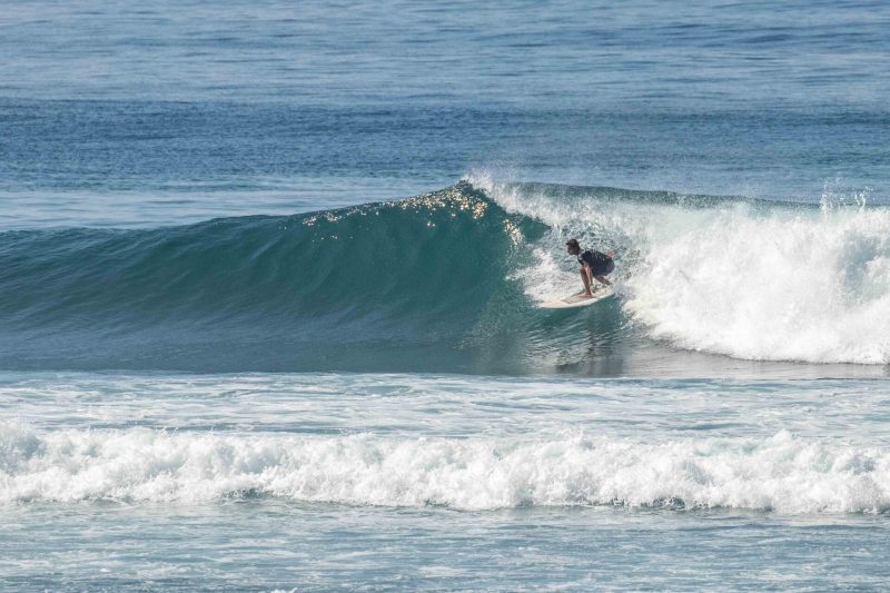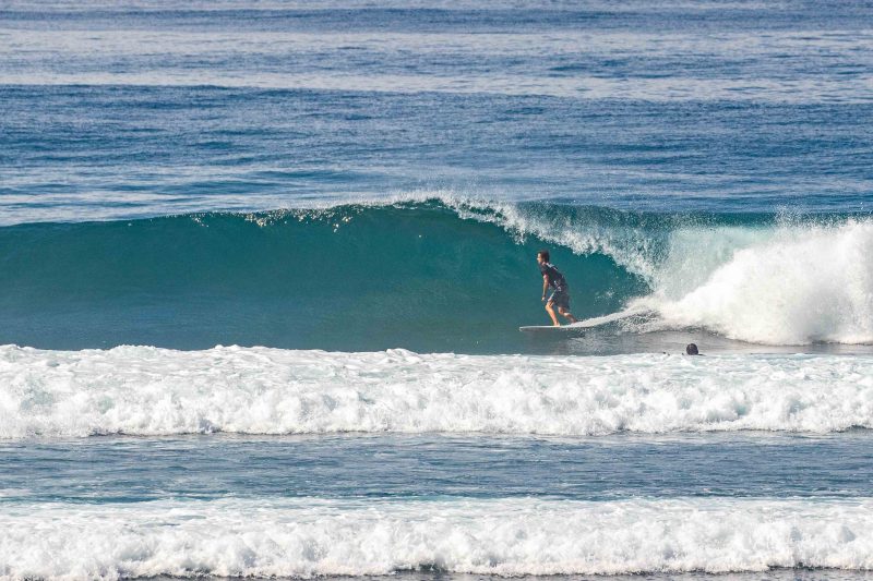 Better than expected surfing conditions this morning at the world’s best surfing holiday destination! The swell was more consistent and had more size than the forecast suggested, much to everyone’s enjoyment. The wind was calm and the sea state was smooth and glassy. At Greenball, the pulsing sets arrived at overhead high in height, with several standout larger sets, from a swell of 3ft. at 13 seconds, from 220 degrees. The surfers enjoyed the excellent right-hand waves, which offered steep sections with beautifully glassy walls. These conditions are ideal for taking your surfing to the next level as the wave gives you the time and speed required to do explosive turns.