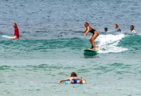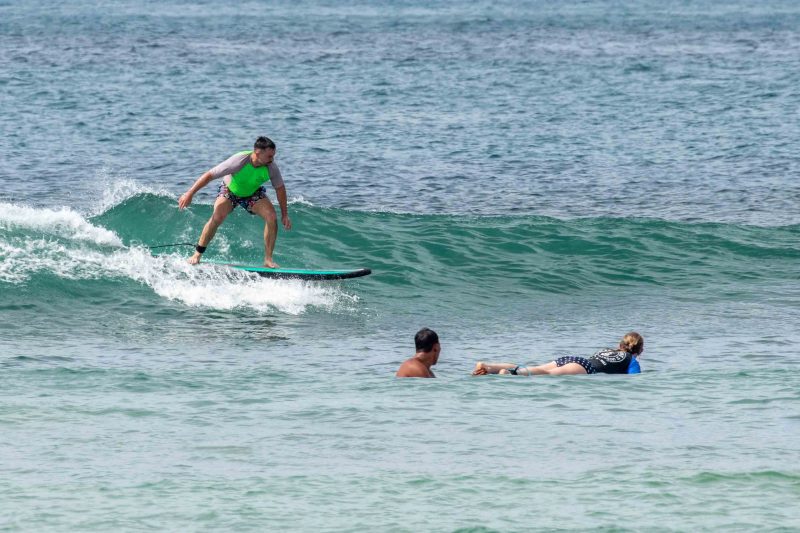 Our beginner surfers were off to Black Stone this morning as the southwest wind picked up in strength, which blows onshore for the island’s west coast. The surfers found more left peaks, and even some rights, at the always dependable break of Black Stone. The waves were around waist-to-shoulder high, brought in by a swell of 4.5 ft. at 13 seconds from 209 degrees. The wind blew briskly offshore just outside the lineup, however, the headland to the south blocked the full strength of the wind. The surfers enjoyed long-breaking waves where they focused on improving their balance and control of the surfboard.