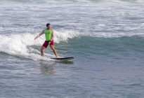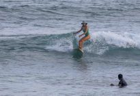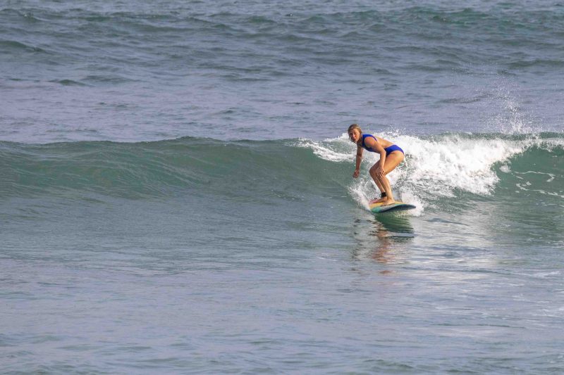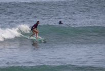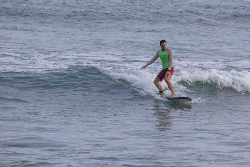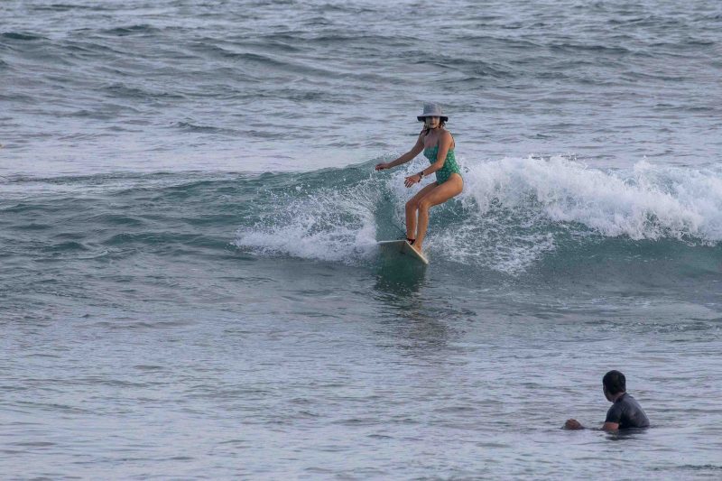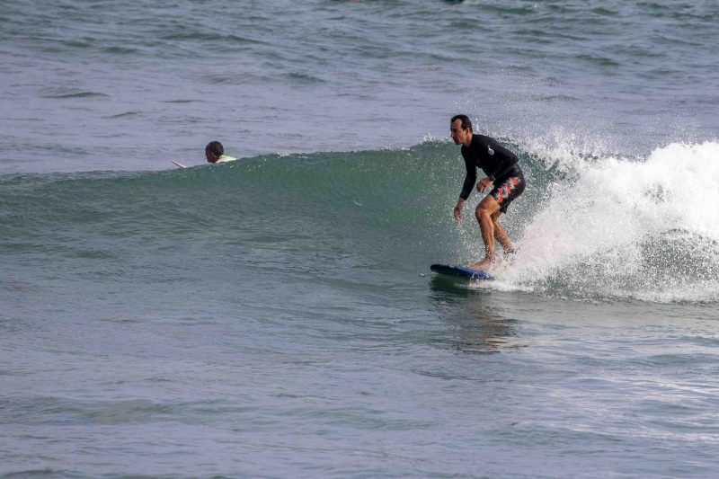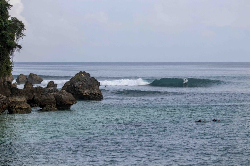 Another perfect day in paradise, with a pumping new swell and clean offshore conditions bringing excellent surf to all breaks in the Uluwatu area. Our beginner surfers enjoyed the protected waves at Baby Padang with a view of the expert surfers getting barrels at the famous left. The current swell is peaking today at 6 ft. at 15 seconds from 215 degrees, which brought in overhead set waves on the outside, and fun, beginner-friendly reform waves on the inside. Our surfers choose to surf the inside, where they enjoyed the long-breaking waist-to-shoulder high waves.