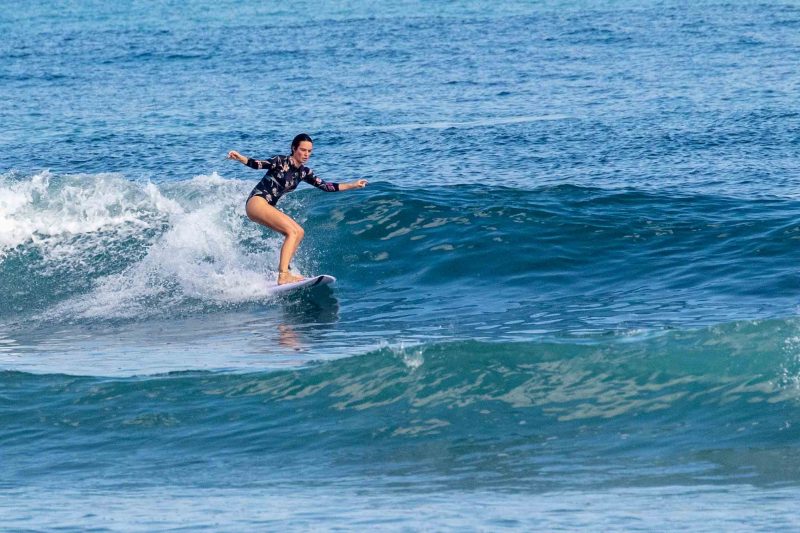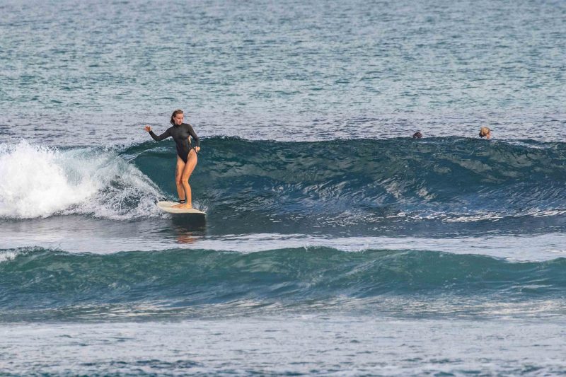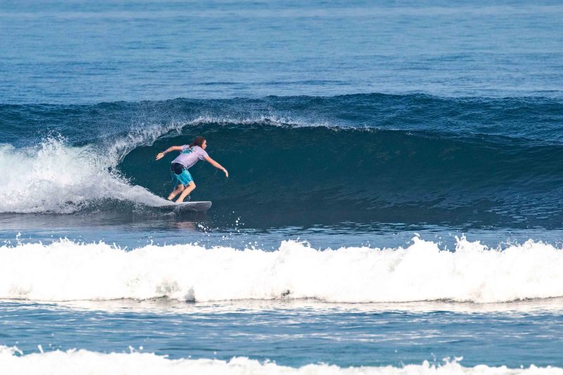 5-star surfing conditions all across the Uluwatu Area! Our intermediate surfers enjoyed perfect, peeling lines at Balangan this morning. Offshore wind, head-high surf, and long lines! Mornings like these are precisely why surfers across the globe travel to this small island. The forecast read 4 ft. At 14 seconds from 211 degrees, which brought in consistent head-high set waves. The lines broke perfectly across the reef, held up by the offshore wind. The surfers worked on slowing down their body movements to better understand what the waves were doing given the ideal conditions.