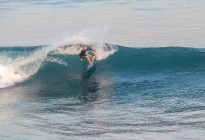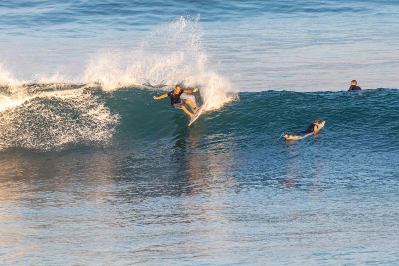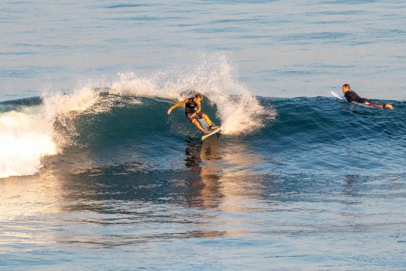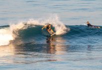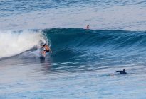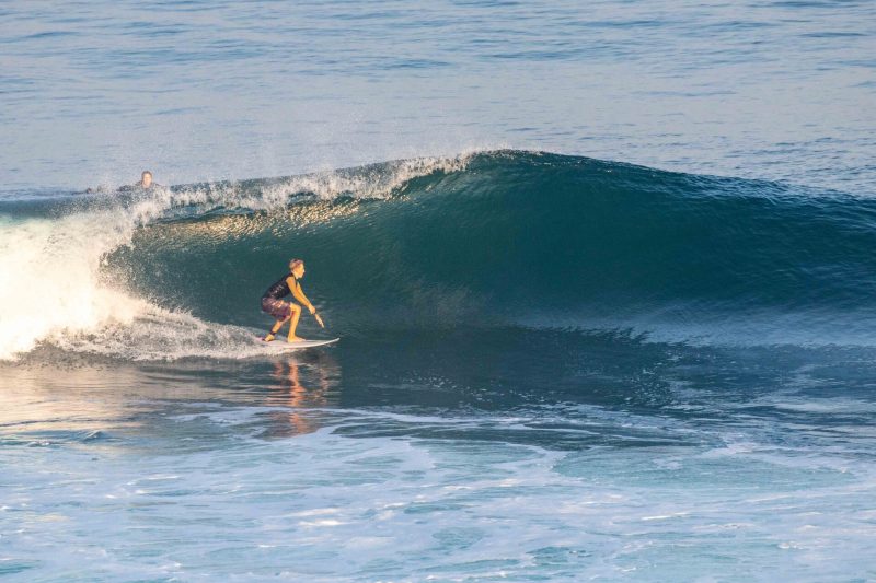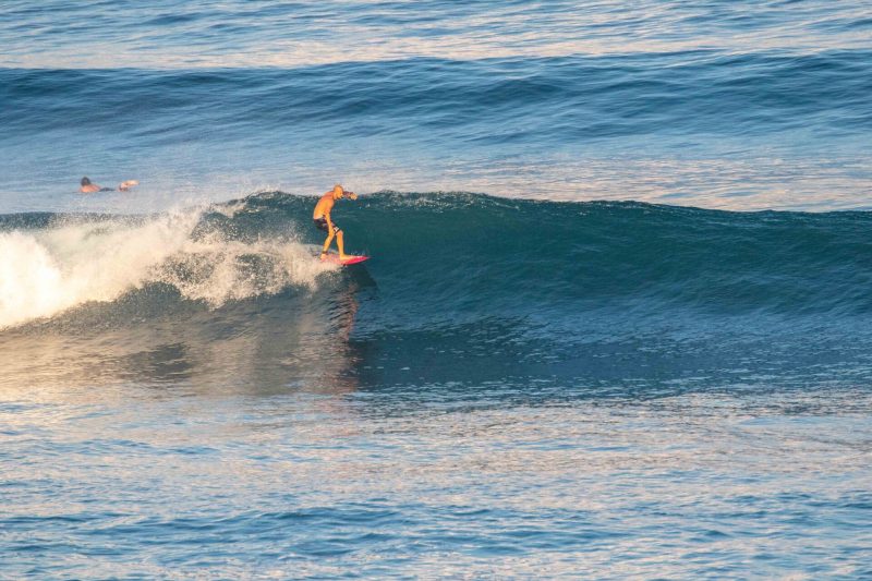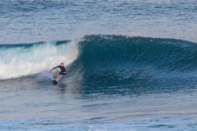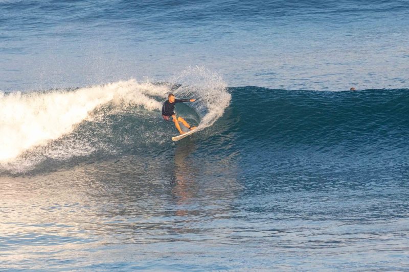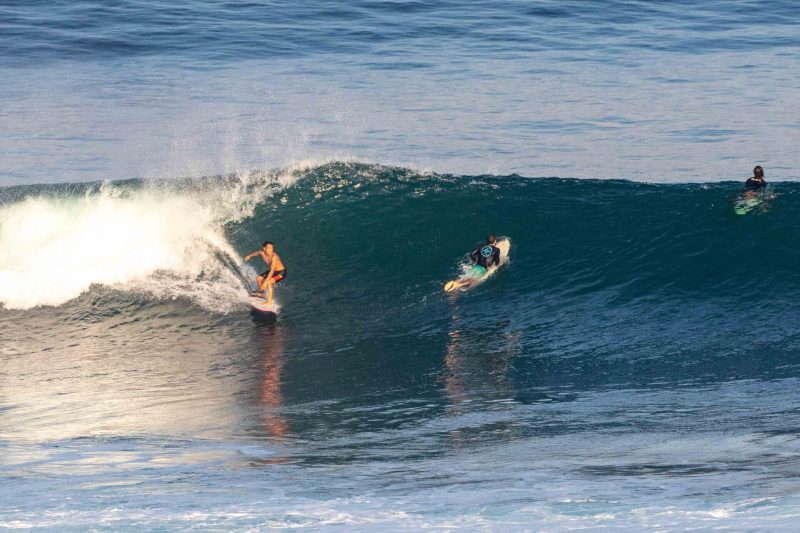 At Uluwatu, the surfers wasted no time, paddling out at first light to beat the rapidly rising tide. They were greeted with flawless sheet glass conditions and elongated lines across the multiple peaks that make up Uluwatu. A gentle offshore breeze from the east added to the perfection, maintaining impeccable conditions. Although the swell continued to decrease in size for another day, the surfers enjoyed head-high set waves with the occasional standout set. Overall, it was a memorable day filled with incredible surf.