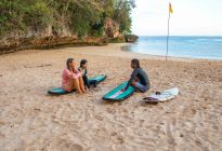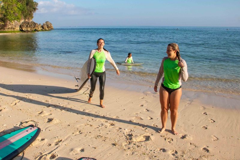 Our intermediate surfers enjoyed a fun-filled high tide session at Balangan, while our advanced group headed to Airport Rights. At Balangan, they had a mix of sunshine and tropical showers however, the wind remained calm to offshore, keeping the conditions clean. The swell has continued to drop in size since yesterday, with mostly shoulder-high set waves coming in at frequent intervals. The water was exceptionally clear this morning, with plenty of colourful fish and turtles swimming below your feet.
