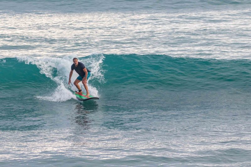Our Intermediate surfers had a delightful morning at the picturesque peaks of Dreamland just as the sun emerged from behind the Bukit Peninsula. The swell has dropped off considerably since the day before to a much more manageable size. The waves today came in at around the head-high range on the largest of sets. As always at this time of the year, Dreamland boasted a glassy ocean surface complemented by a gentle offshore breeze. The water showcased a stunning blue hue, a result of the white sand resting on the seafloor. Surfers focused on refining their technique, capitalizing on the mellow, elongated slopes of the waves to enhance balance and control.