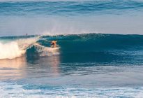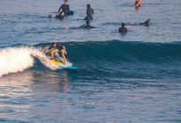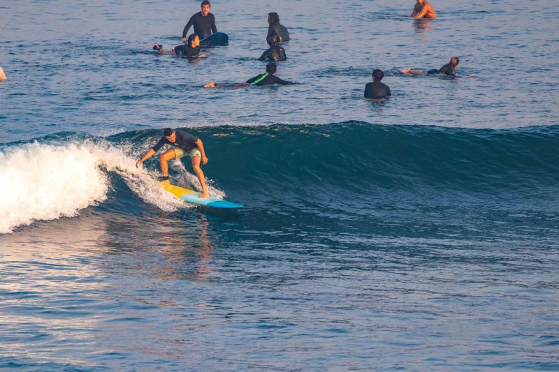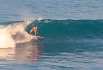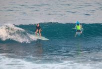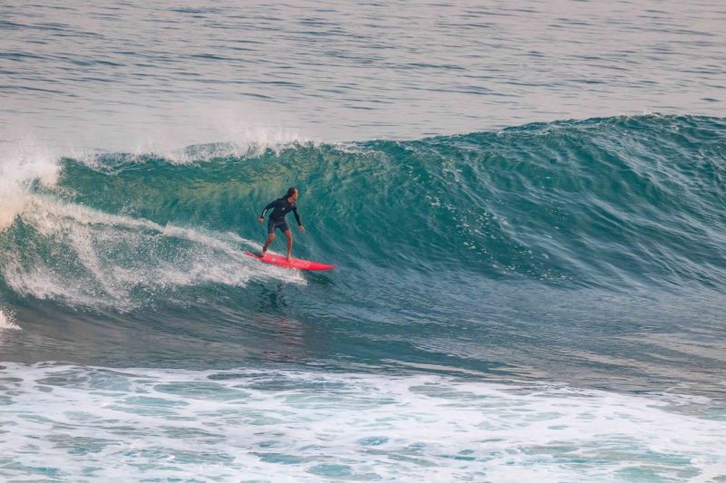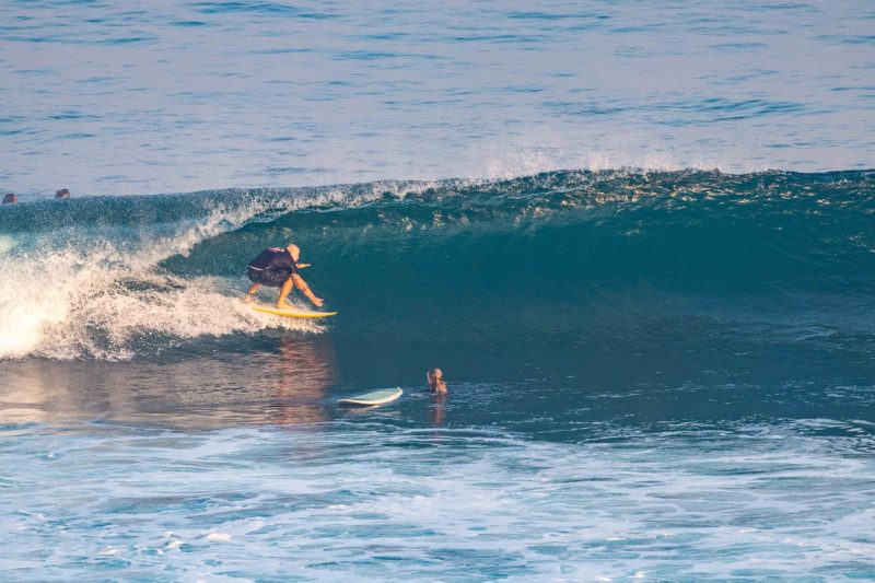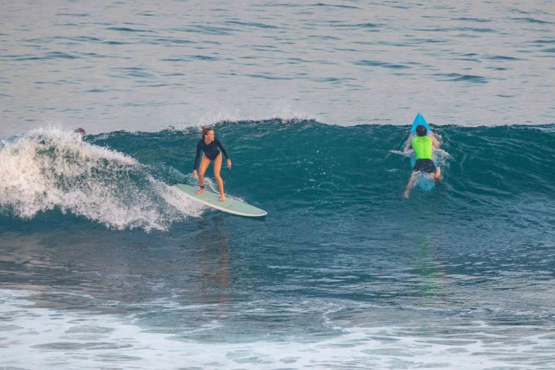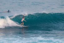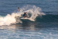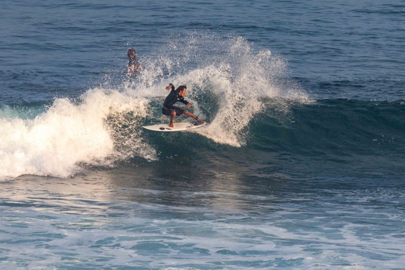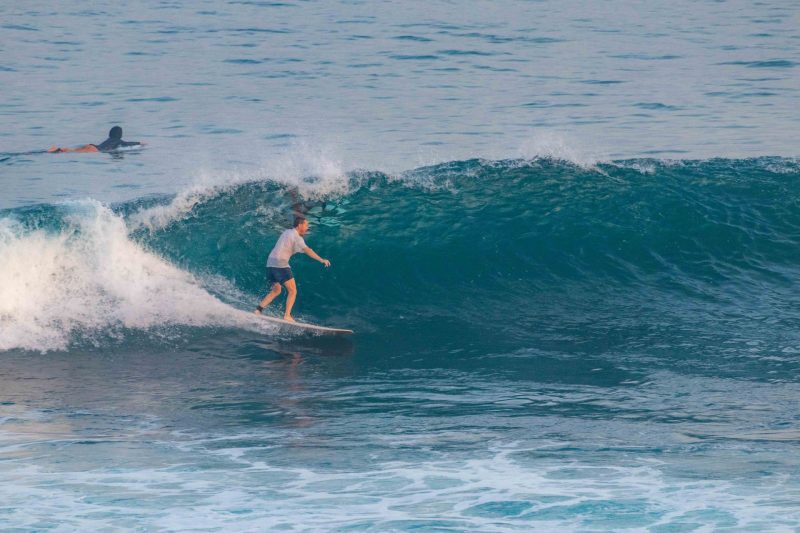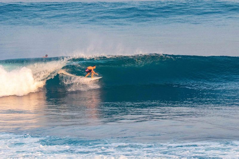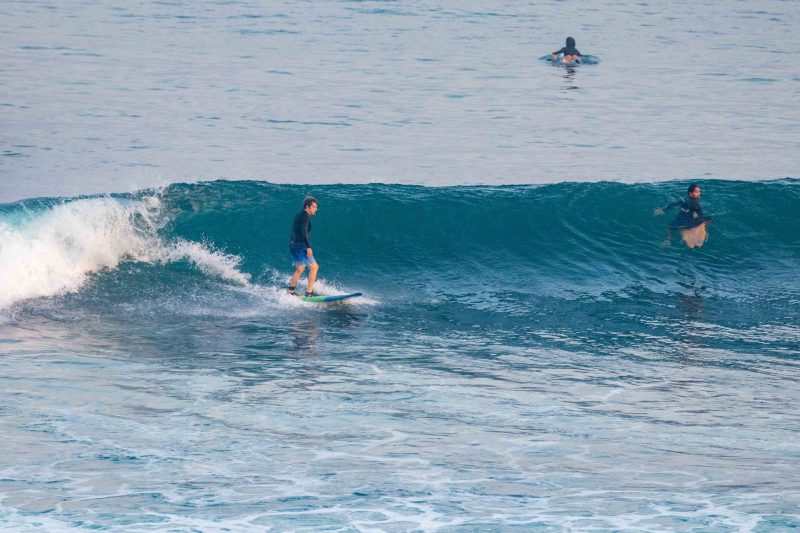 Our intermediate group had a fantastic morning surfing Uluwatu at first light! The conditions provided an enjoyable blend of long rides with challenging sections for the brave on the larger waves. The swell had decreased in size compared to yesterday, creating overhead lines with occasional standout sets. The wind was initially calm but gradually gained strength throughout the session. The more experienced surfers enjoyed the barreling sections over the shallower parts of the reef, while the less-seasoned surfers opted for the smaller waves.