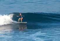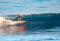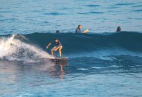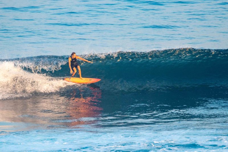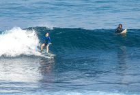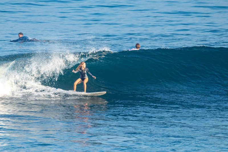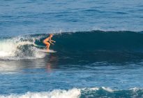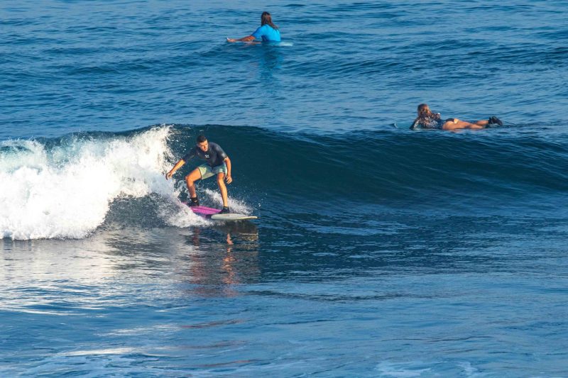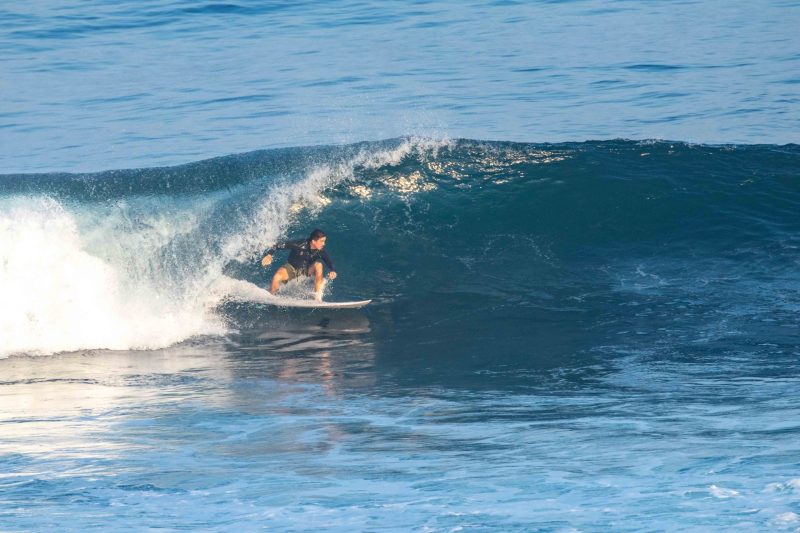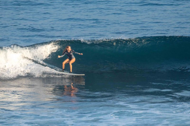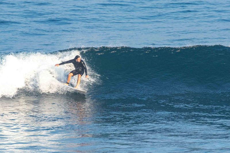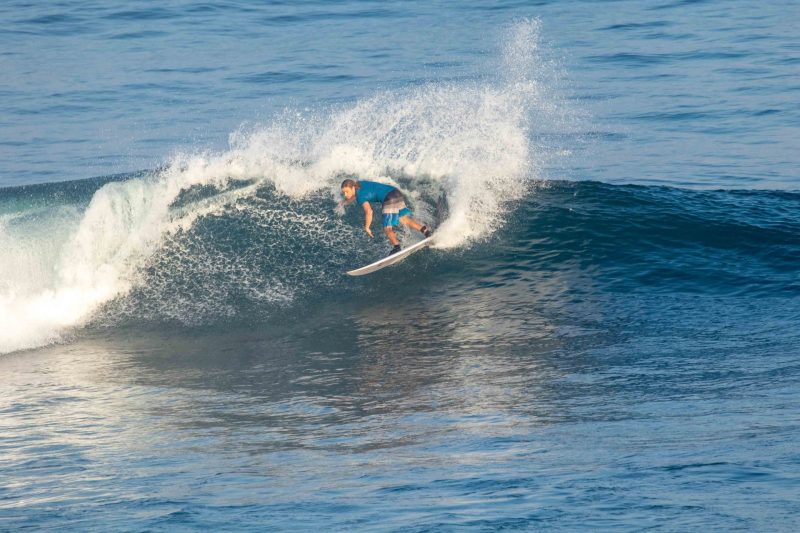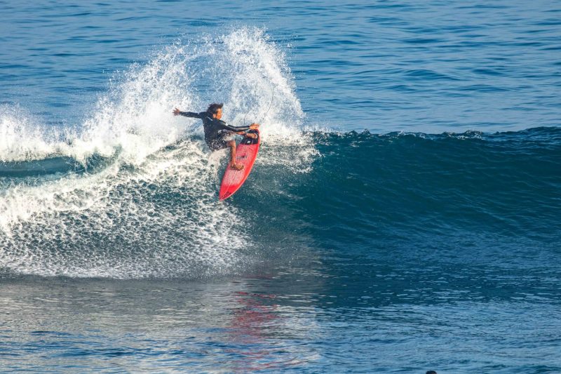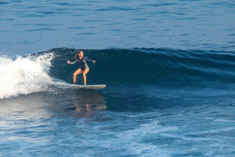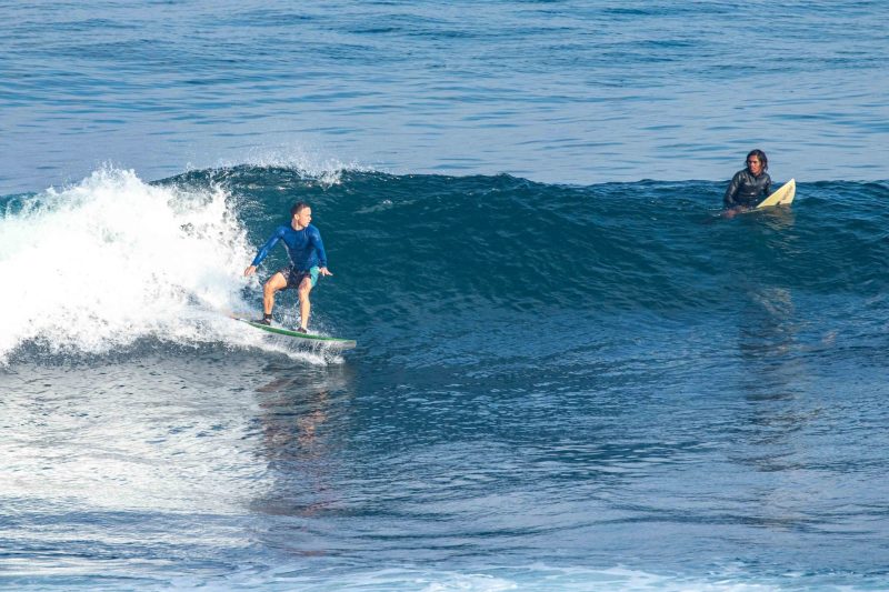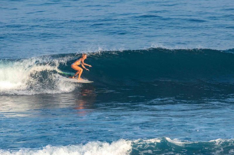 With a dropping swell, our intermediate surfers seized the opportunity to surf Bali’s premier wave. Paddling out through the cave, the surfers found long-running waves peeling beautifully down the reef. The waves were shoulder high on most sets, with occasional larger sets breaking wide of the main peak. The wind blew beautifully offshore, setting up for an ideal session. The surfers worked on quickly getting to their feet and down the line. If done correctly, you can be rewarded with a lengthy 300-meter ride.