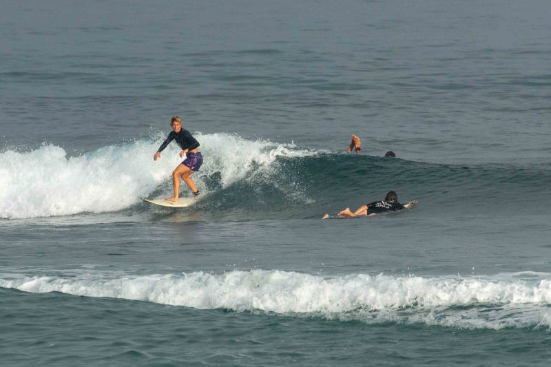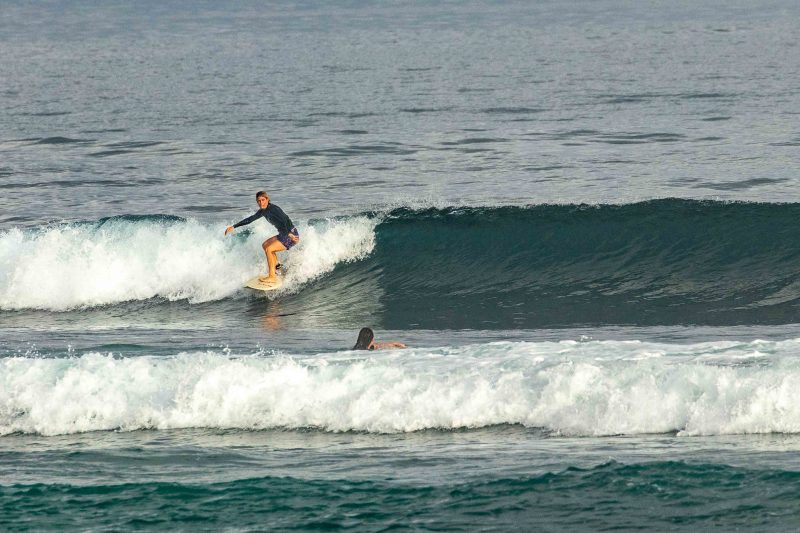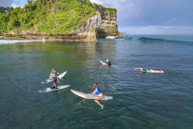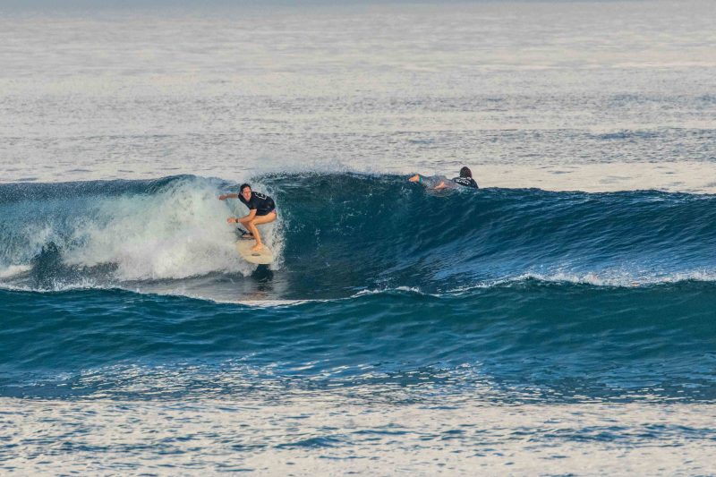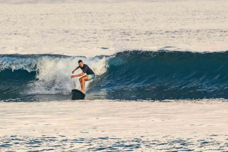 Our intermediate surfers enjoyed a fun-filled high tide session at Balangan, while our advanced group headed to Airport Rights. At Balangan, they had a mix of sunshine and tropical showers however, the wind remained calm to offshore, keeping the conditions clean. The swell has continued to drop in size since yesterday, with mostly shoulder-high set waves coming in at frequent intervals. The water was exceptionally clear this morning, with plenty of colourful fish and turtles swimming below your feet.