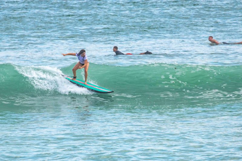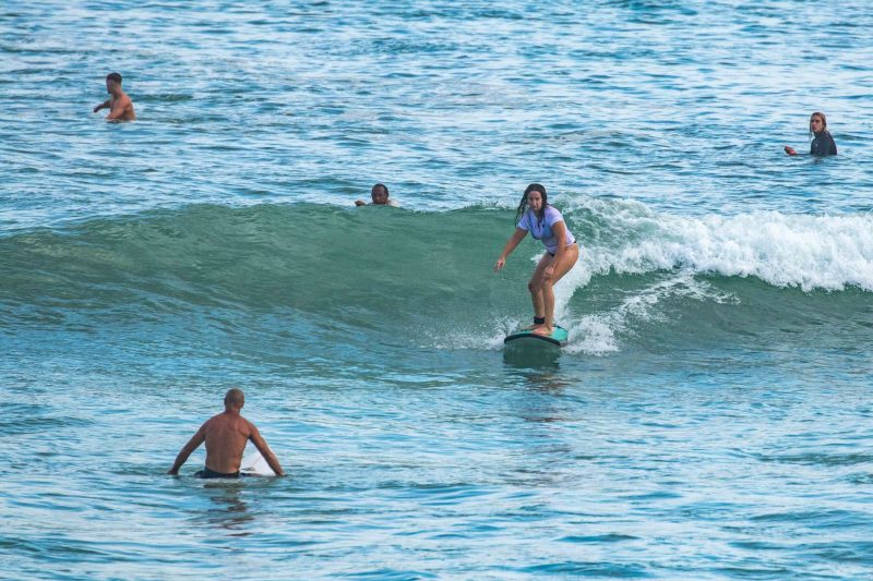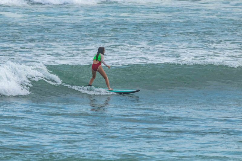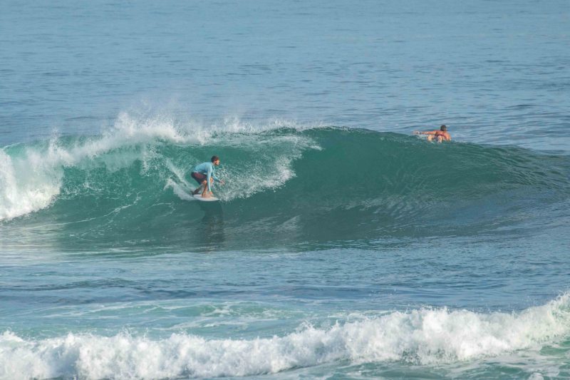 Big surf on our coastline today, but that does not slow our beginner surfers down! Our dedicated surfers choose to stick to the inside reform wave, which is a great option when the swell picks up. On the reform wave, the surfers enjoyed waist-to-shoulder high waves breaking with clean lines across the reef. The wind blew perfectly offshore at a gentle pace, and the sun was doing its best to appear from behind a cloud. The surfers enjoyed an exciting session as they observed the expert surfers testing their barrel riding skills at the world-renowned Padang Padang Left, just on the other side of the channel.